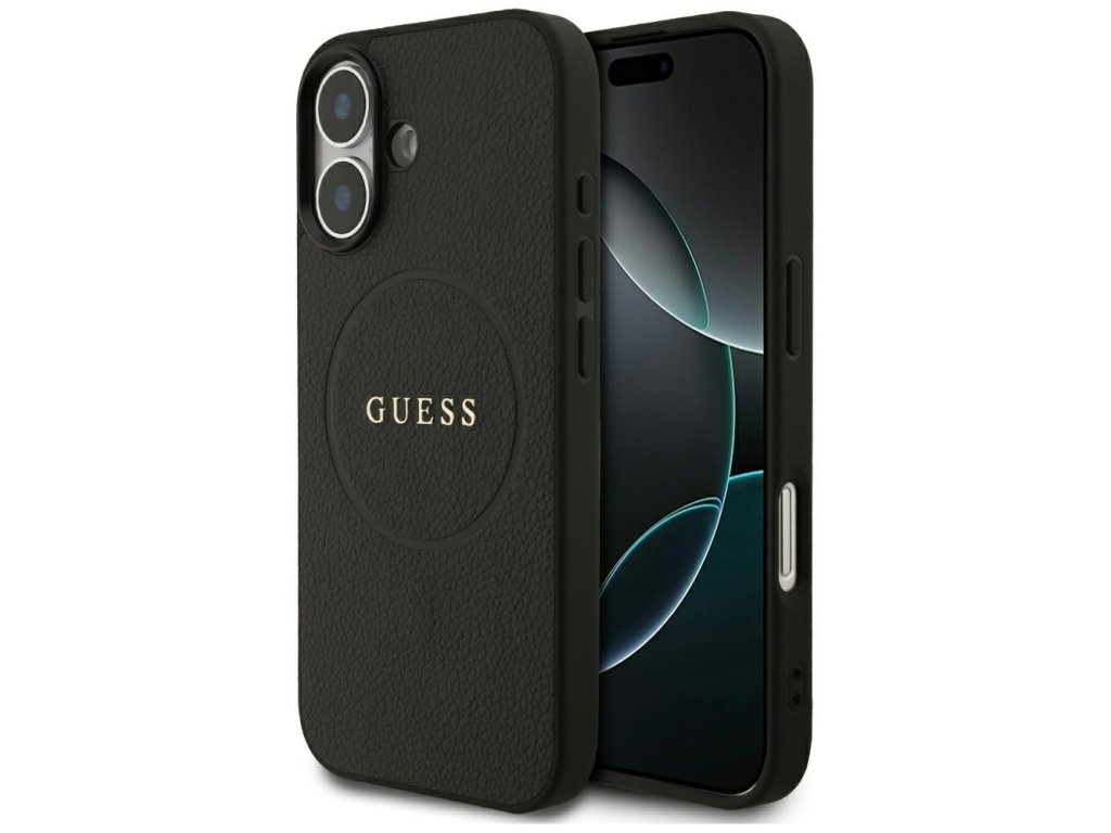 Guess – Grained Gold Ring MagSafe pouzdro na iPhone 17 – černé
