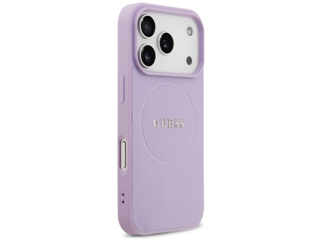 Guess – Grained Gold Ring MagSafe pouzdro na iPhone 17 Pro – fialové