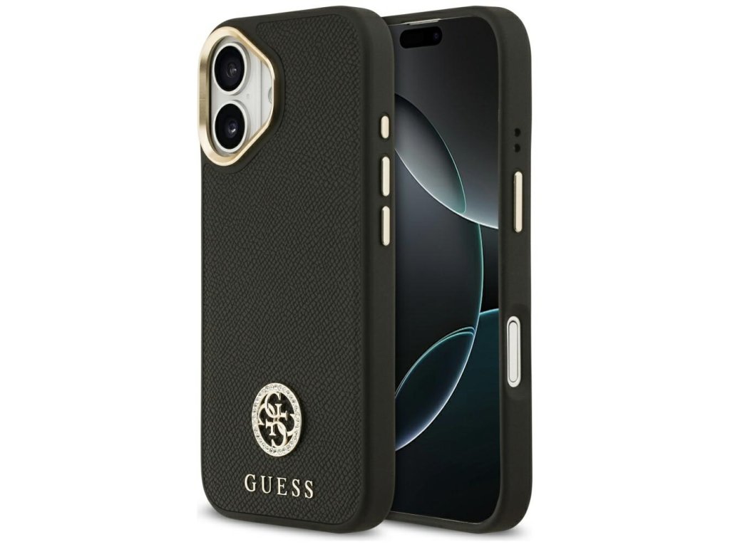 Guess – Grained Strass Logo MagSafe pouzdro na iPhone 17 – černé
