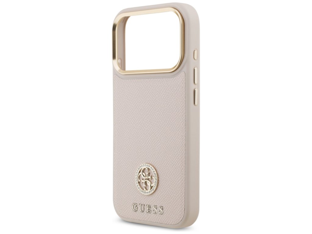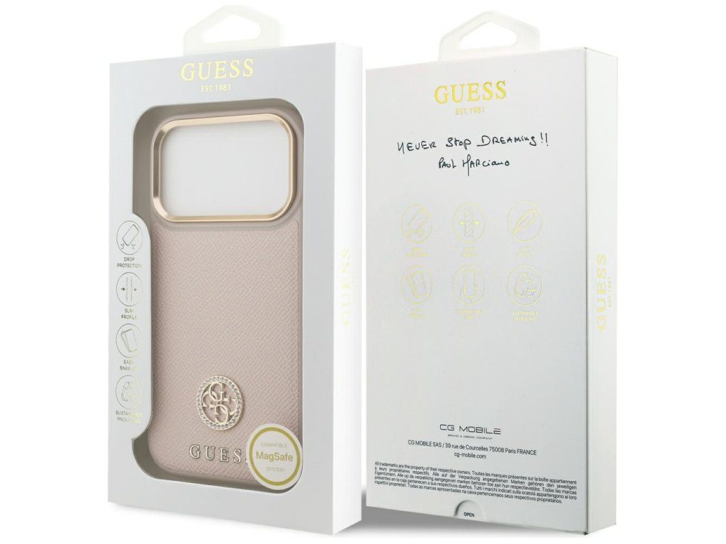 Guess – Grained Strass Logo MagSafe pouzdro na iPhone 17 Pro – růžové