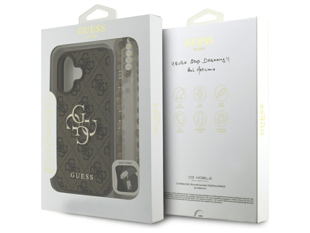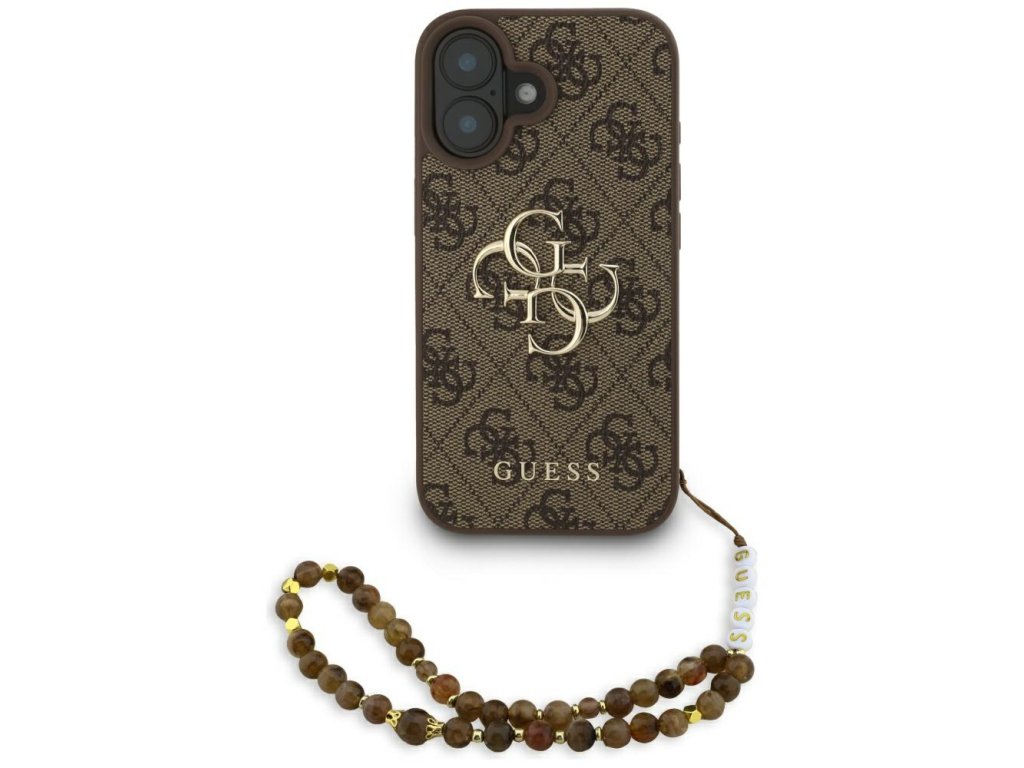 Guess – Hardcase 4G Classic Logo s popruhem obal na iPhone 16 – hnědý