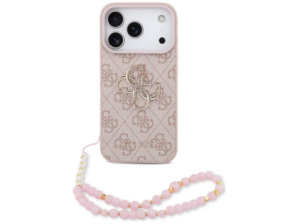 Guess – Hardcase 4G Classic Logo s popruhem obal na iPhone 17 Pro – růžový