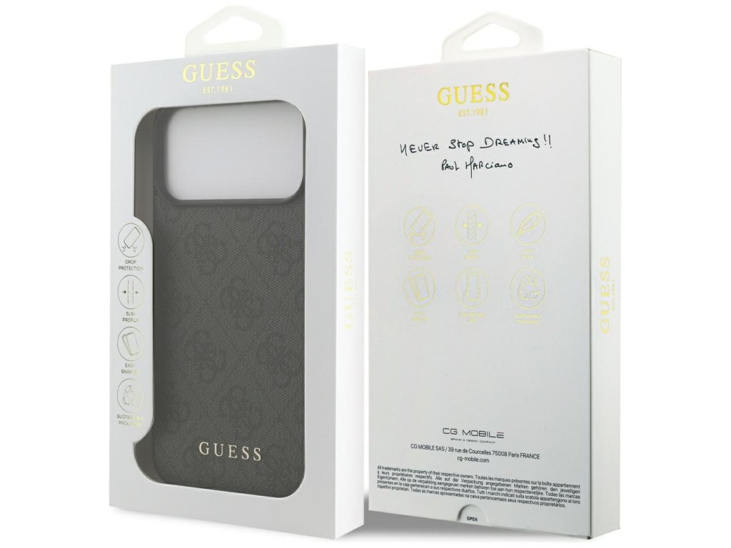 Pobavte se s obalem z ekologické kůže, který budete každý den obdivovat. Co víc si přát než tento původní obal na iPhone 17 Pro Max Guess?