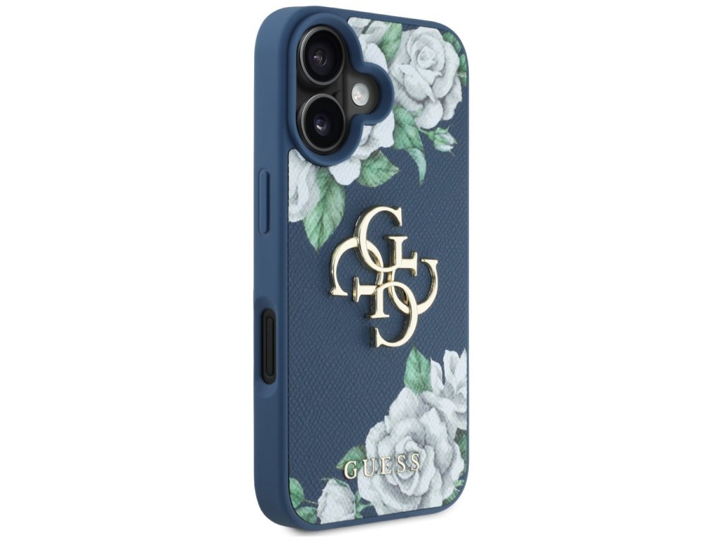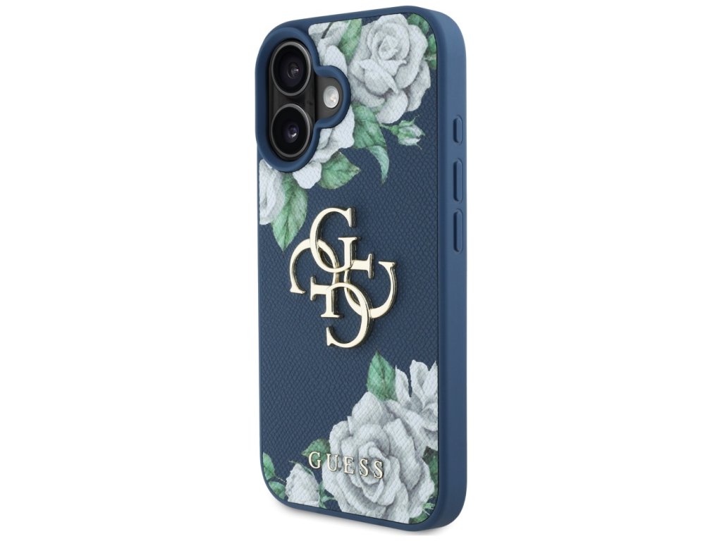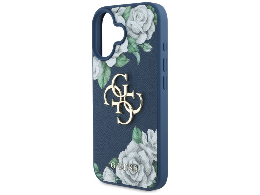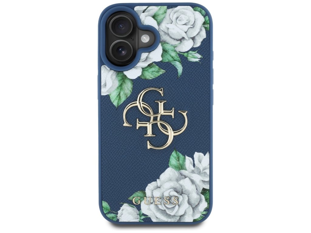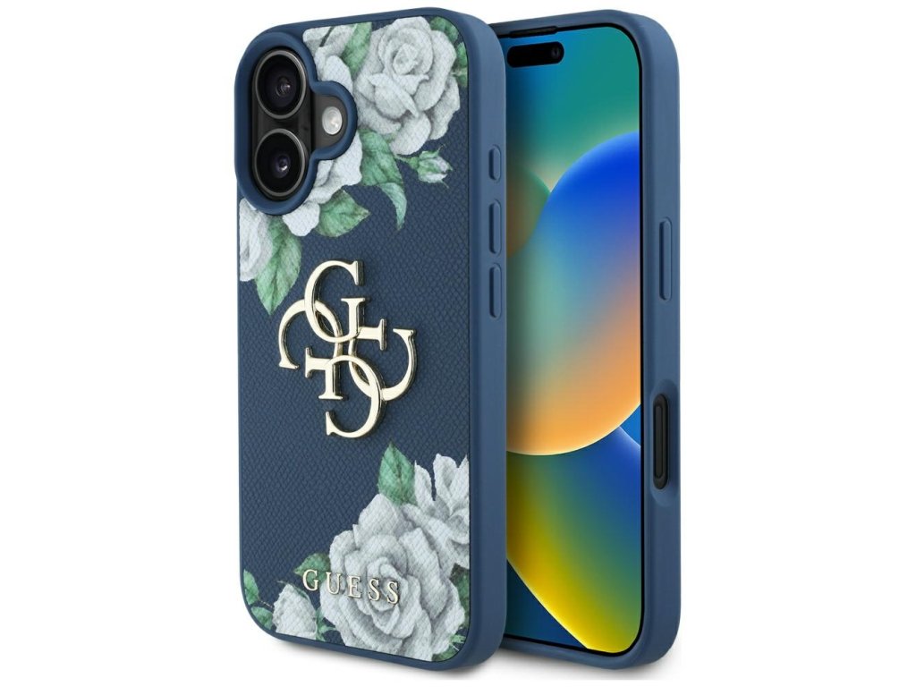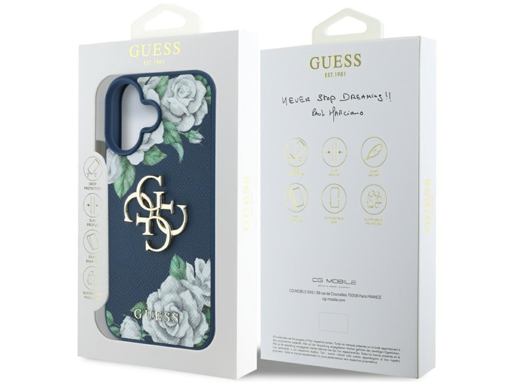 Guess – Hardcase 4G Grained Roses Big Logo – ochranný kryt pro iPhone 16 – modrý