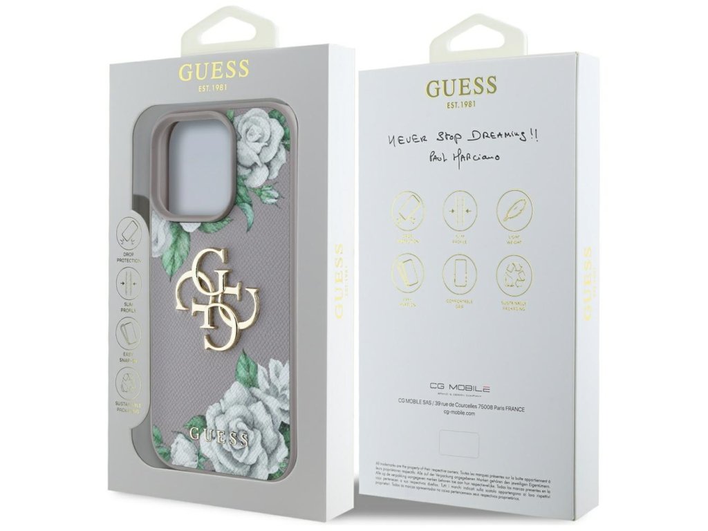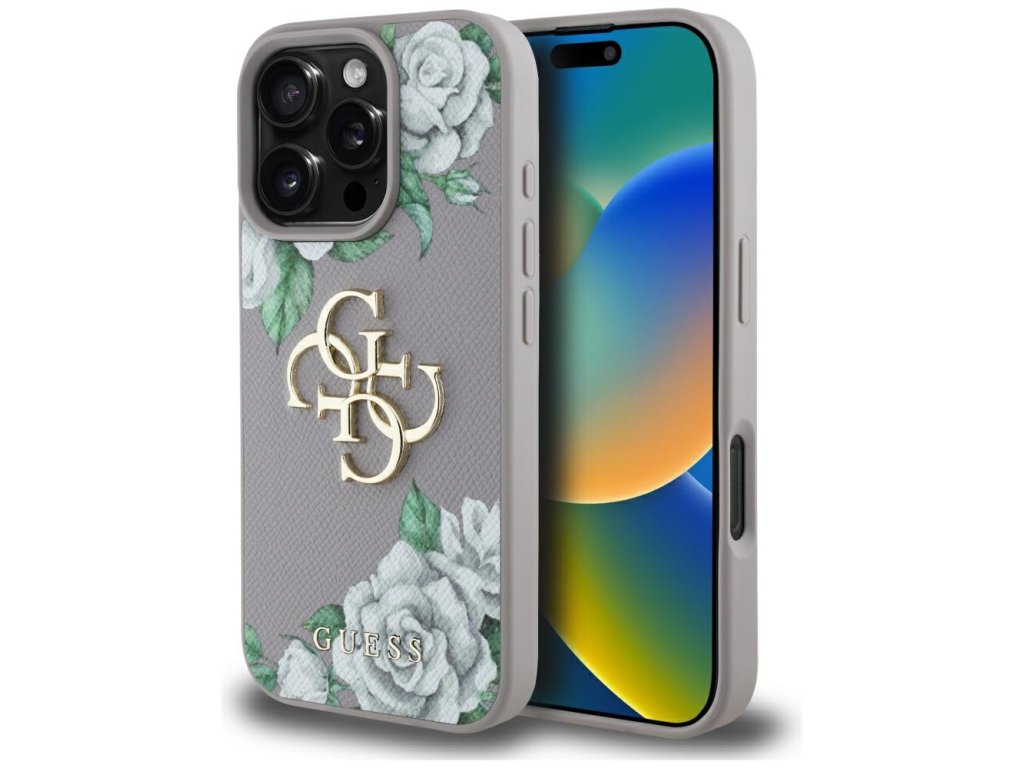 Guess – Hardcase 4G Grained Roses Big Logo – ochranný kryt pro iPhone 16 Pro Max – fialový