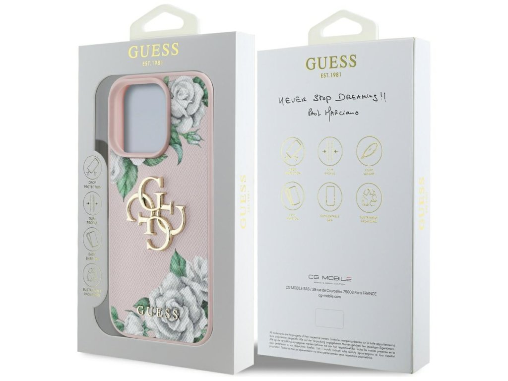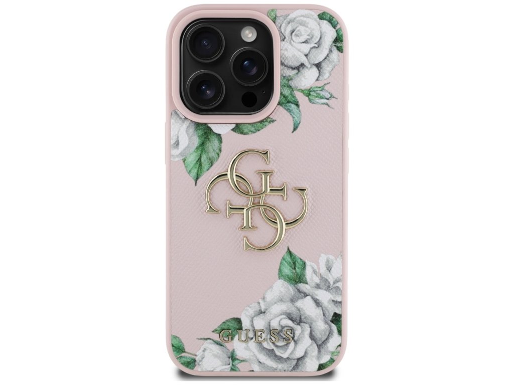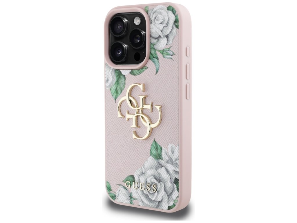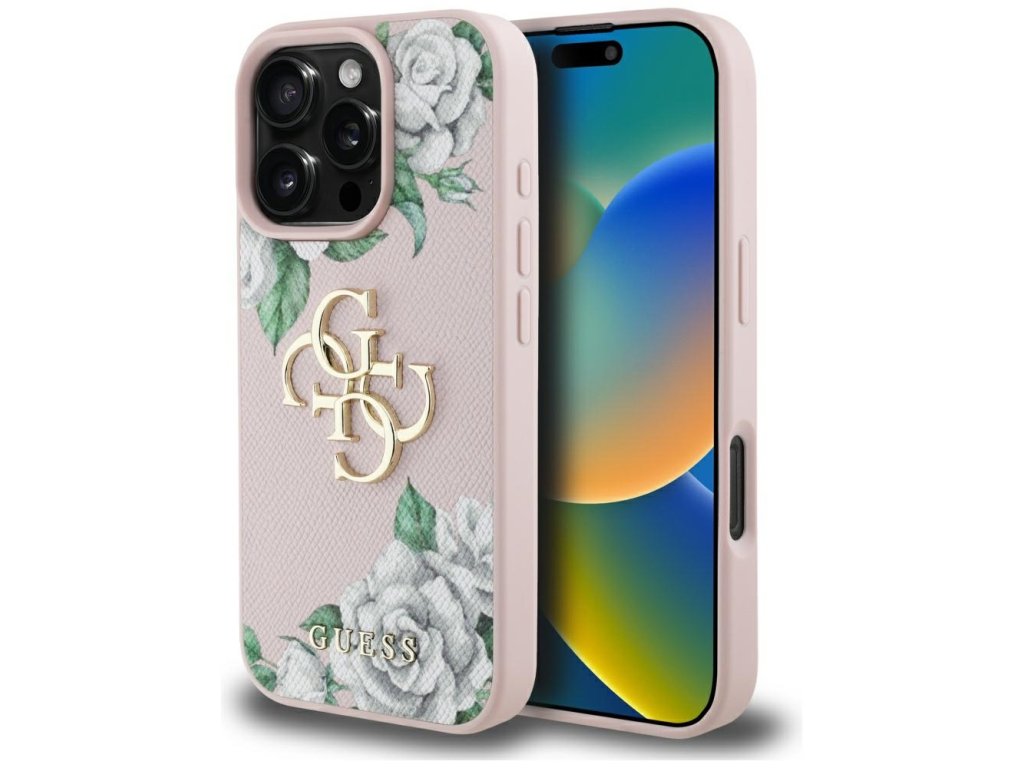 Guess – Hardcase 4G Grained Roses Big Logo – ochranný kryt pro iPhone 16 Pro Max – růžový