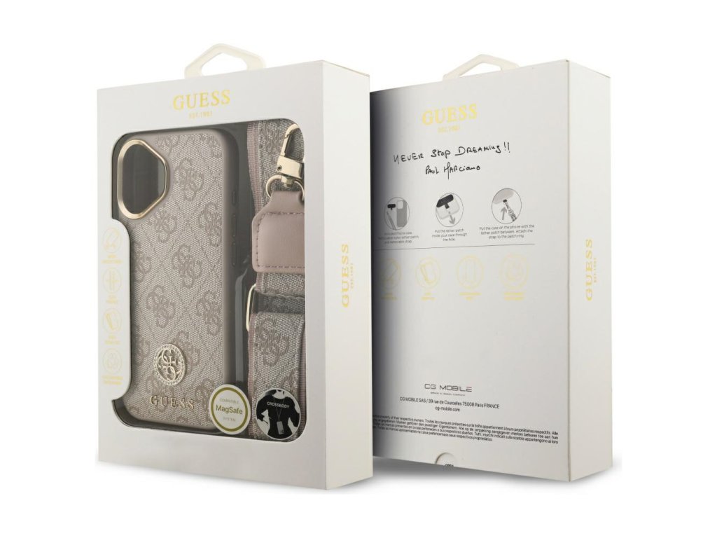Guess – Hardcase 4G Strass Logo & Big Strap obal na iPhone 17 – růžový