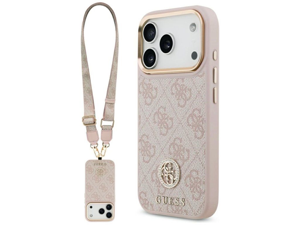 Guess – Hardcase 4G Strass Logo & Big Strap obal na iPhone 17 Pro – růžový