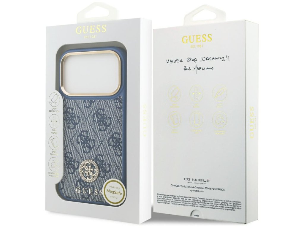 Guess – Hardcase 4G Strass Logo MagSafe obal na iPhone 17 Pro – modrý