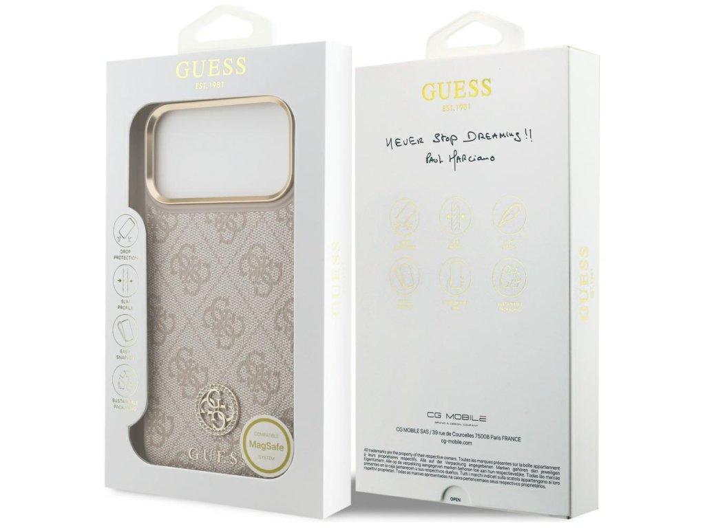 ...obal na telefon, který si vyberete, odráží vaši osobnost? Pokud vás charakterizuje klasický a elegantní styl, musíte mít obal Guess iPhone 17 Pro Max z ekologické kůže!