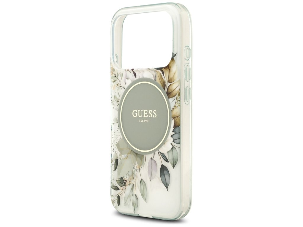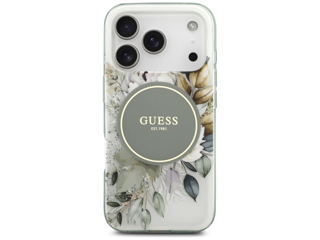 Guess – IML Flower & Tonal Circle MagSafe obal na iPhone 17 Pro – zelený