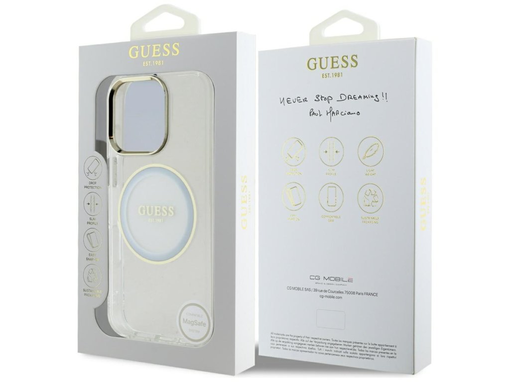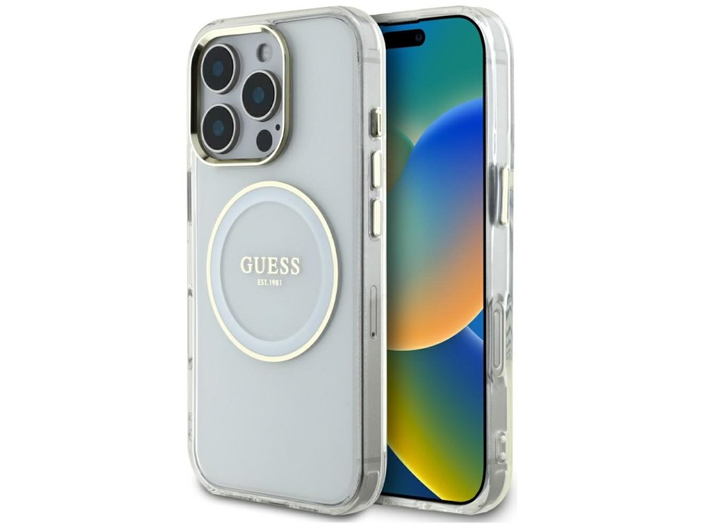 Guess – IML Metal Colored Circle MagSafe – kryt s MagSafe pro iPhone 16 Pro – bílý
