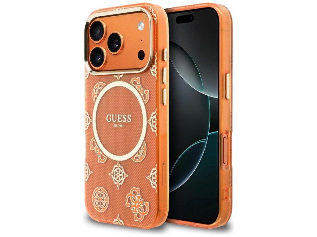 Guess – IML Peony Dot MagSafe pouzdro pro iPhone 17 Pro – oranžové