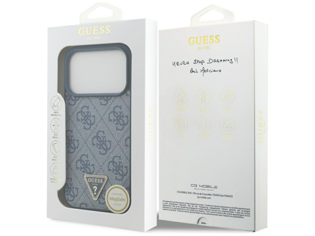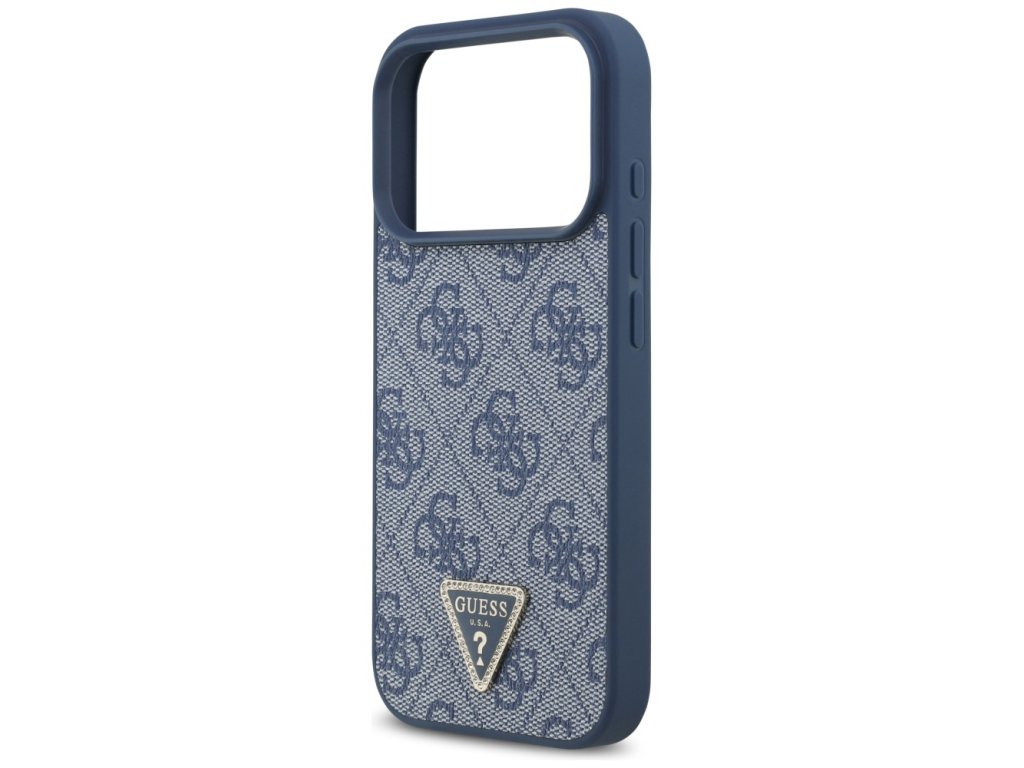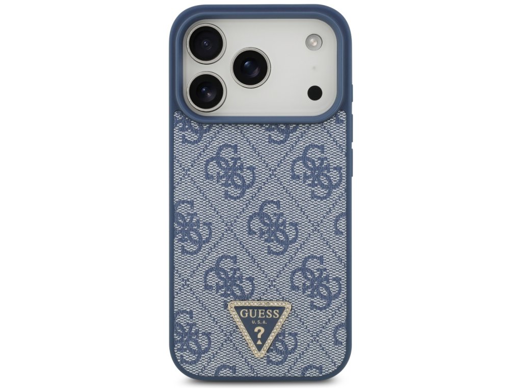 Guess – Leather 4G Triangle Strass MagSafe obal na iPhone 17 Pro – modrý