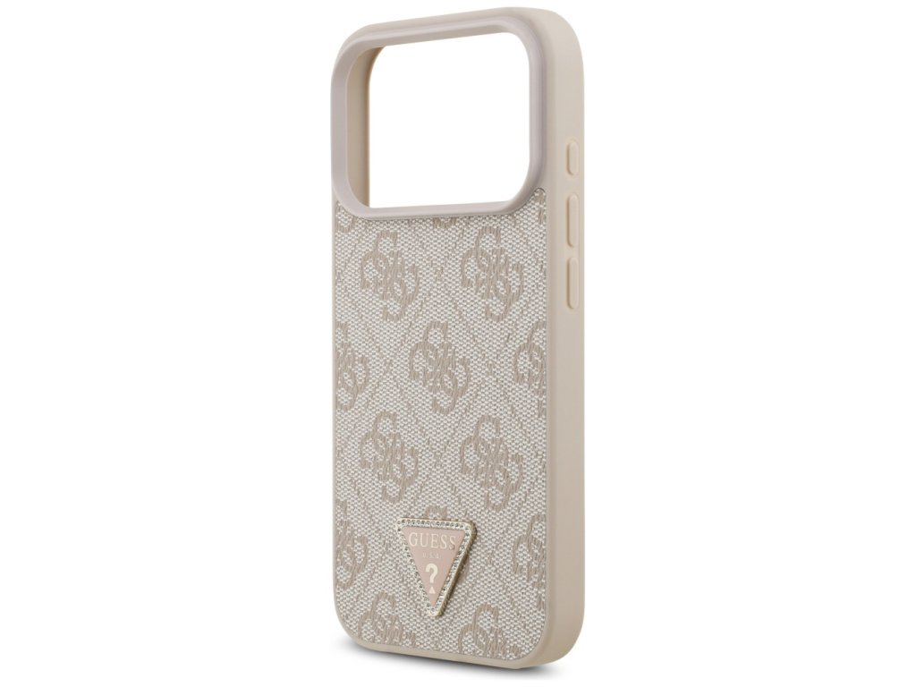 Guess – Leather 4G Triangle Strass MagSafe obal na iPhone 17 Pro – růžový