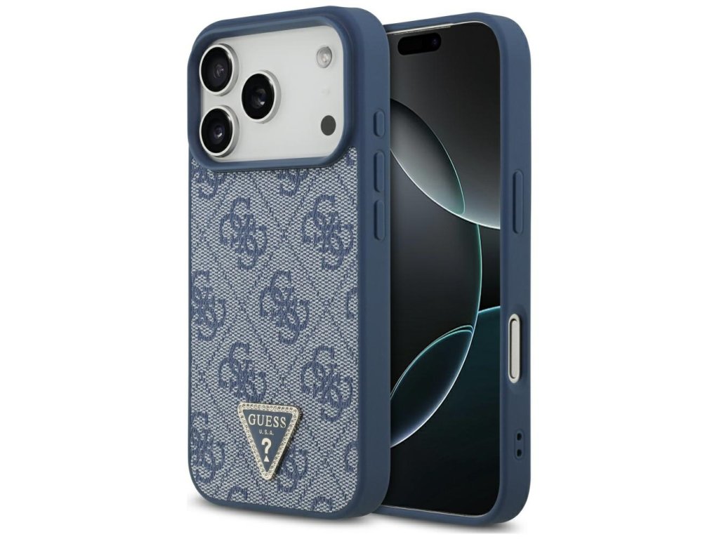 Guess – Leather 4G Triangle Strass MagSafe obal na iPhone 17 Pro Max – modrý