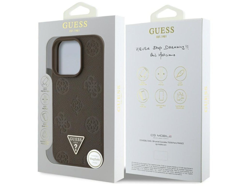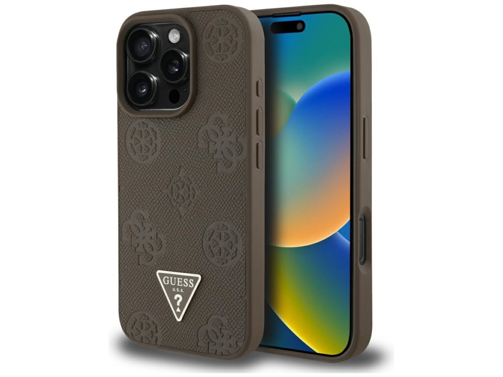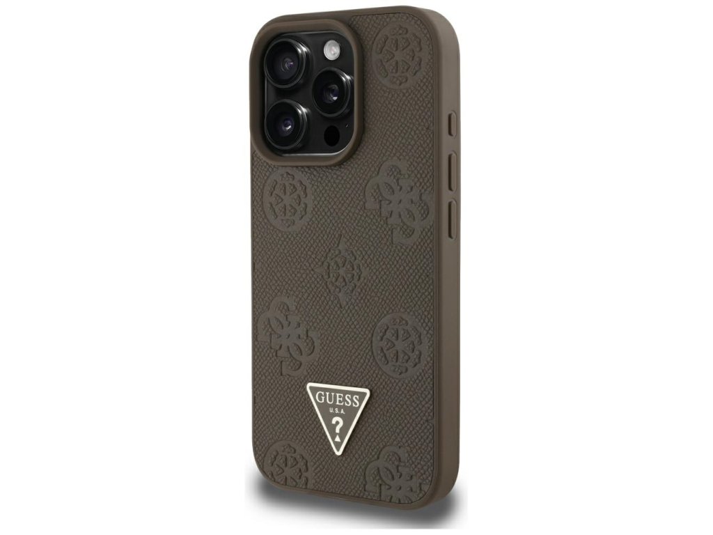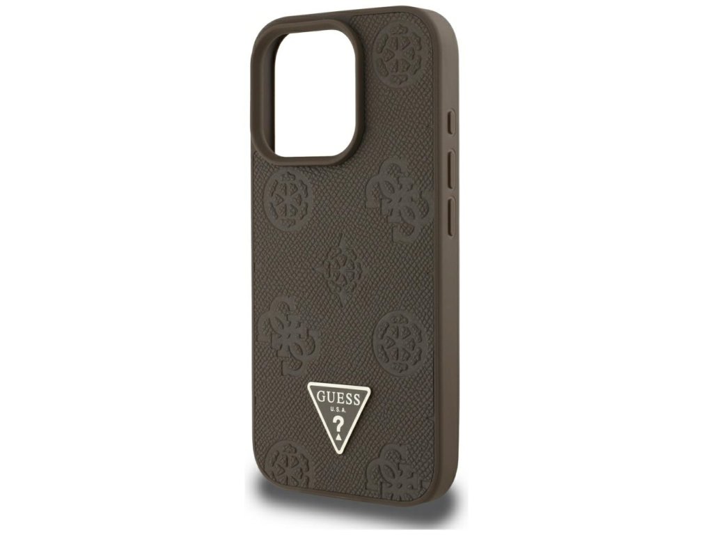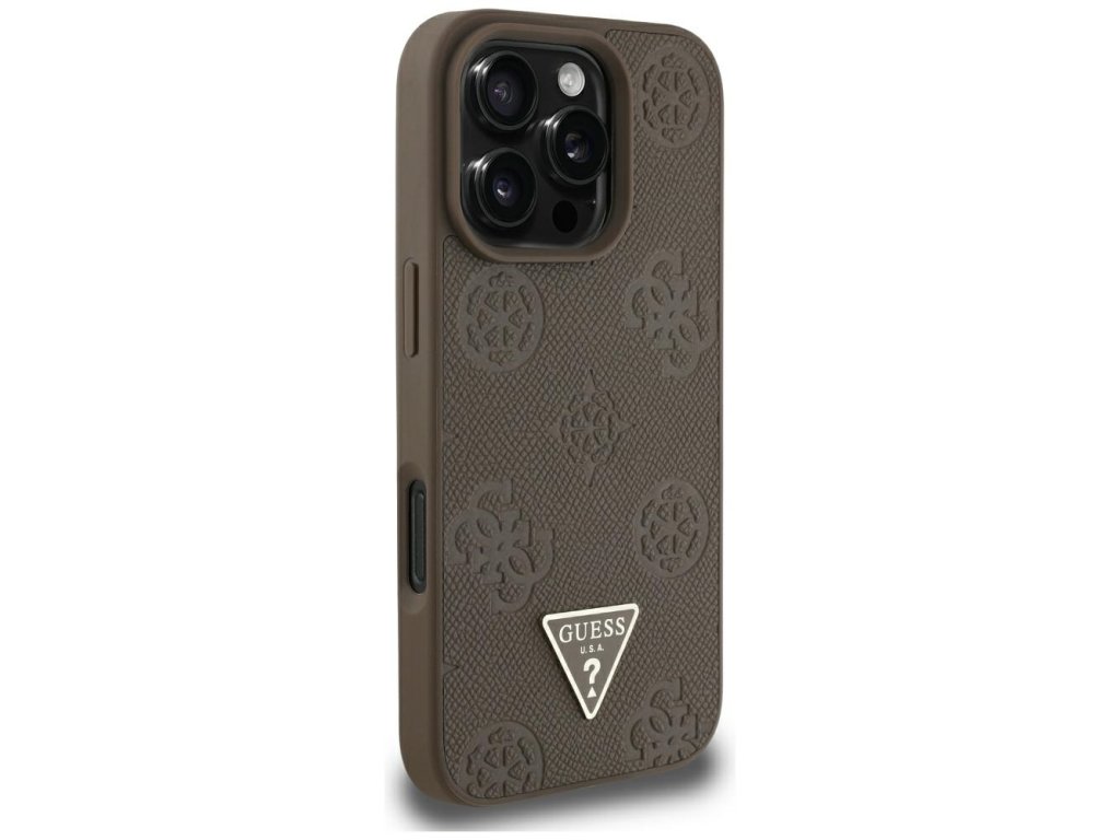 Guess – Peony Grained Hot Stamp Triangle MagSafe – kryt s MagSafe pro iPhone 16 Pro Max – hnědý
