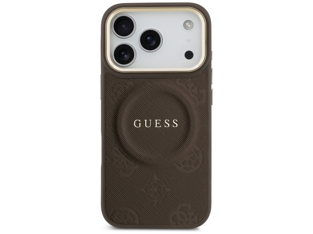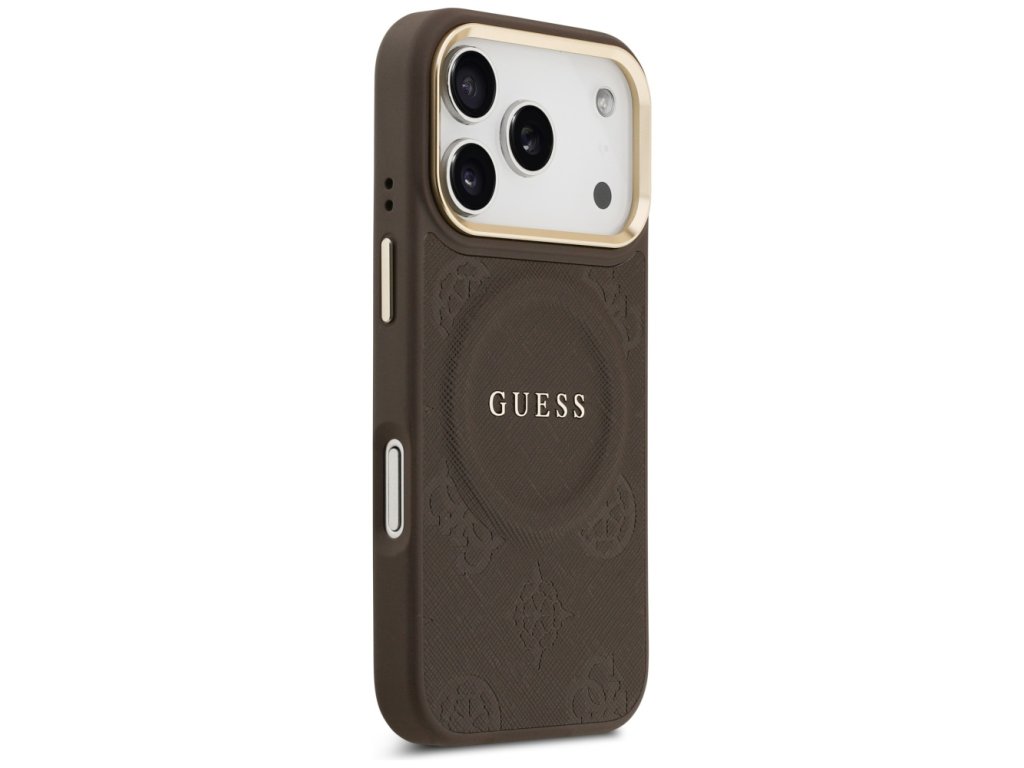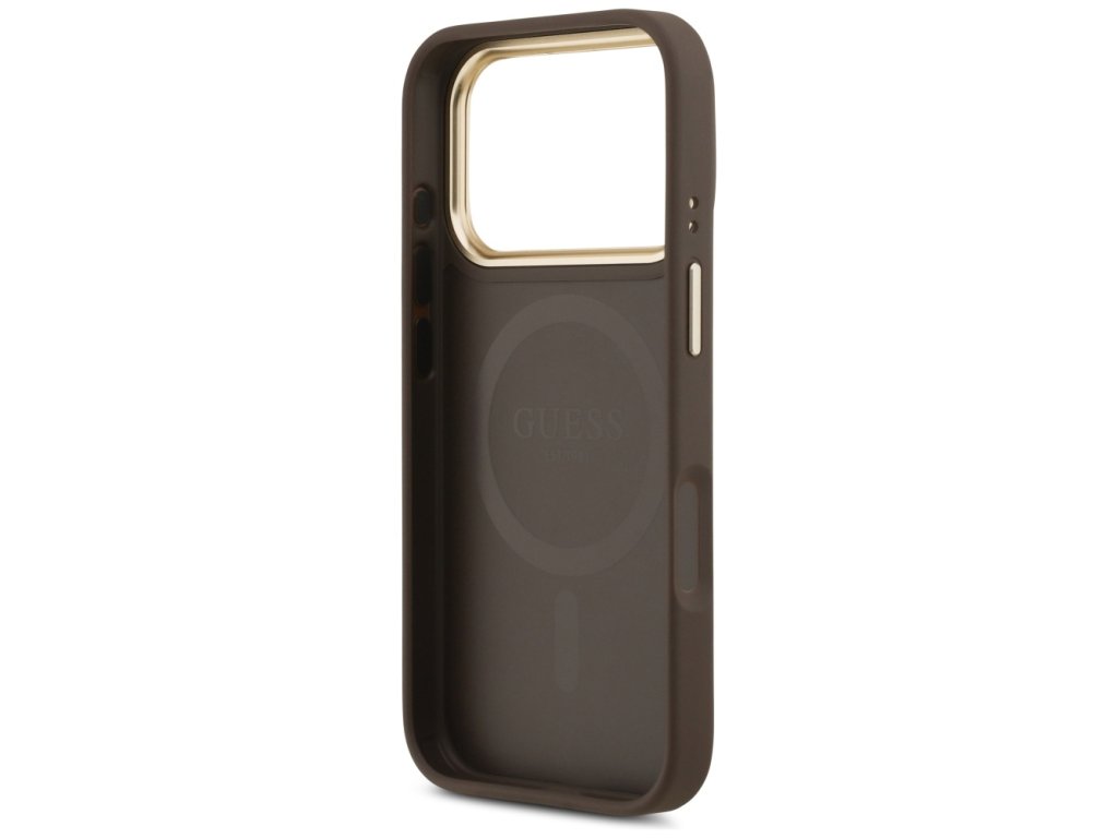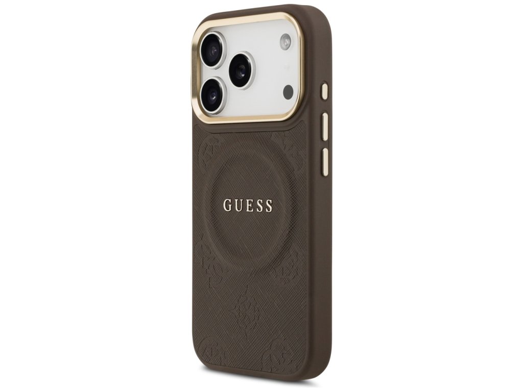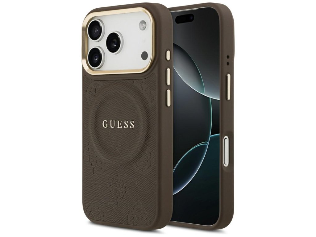 Guess – Peony Hot Stamp MagSafe obal na iPhone 17 Pro – hnědý