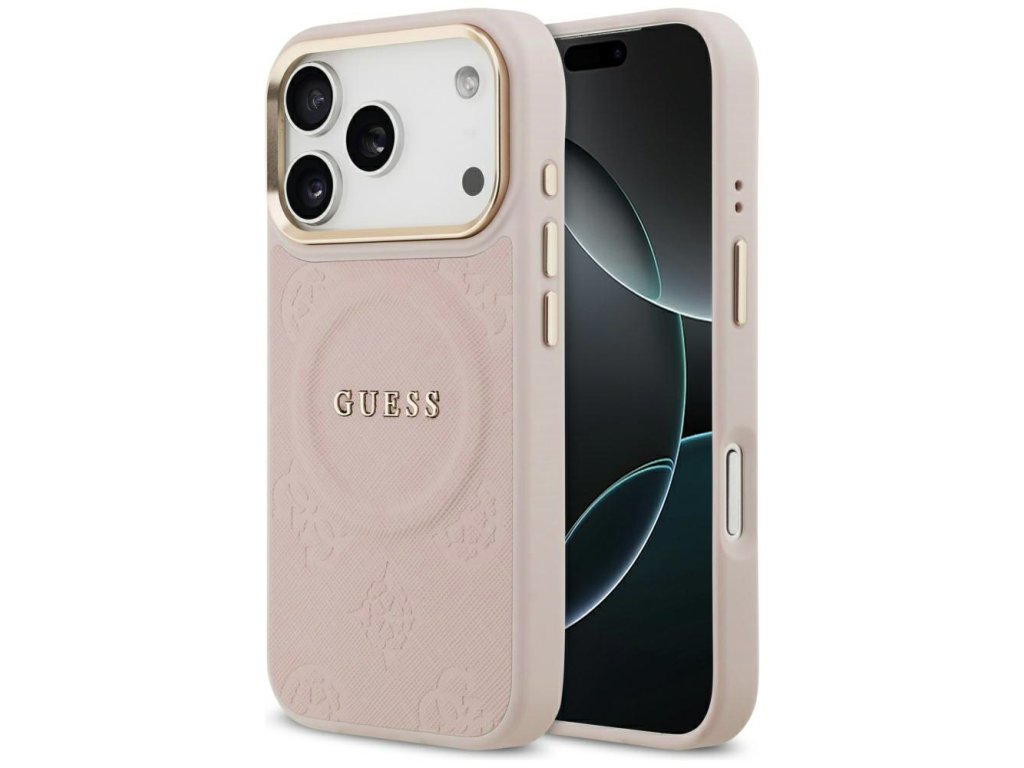 Guess – Peony Hot Stamp MagSafe obal na iPhone 17 Pro – růžový