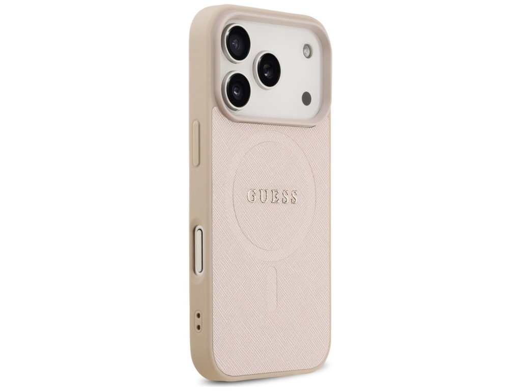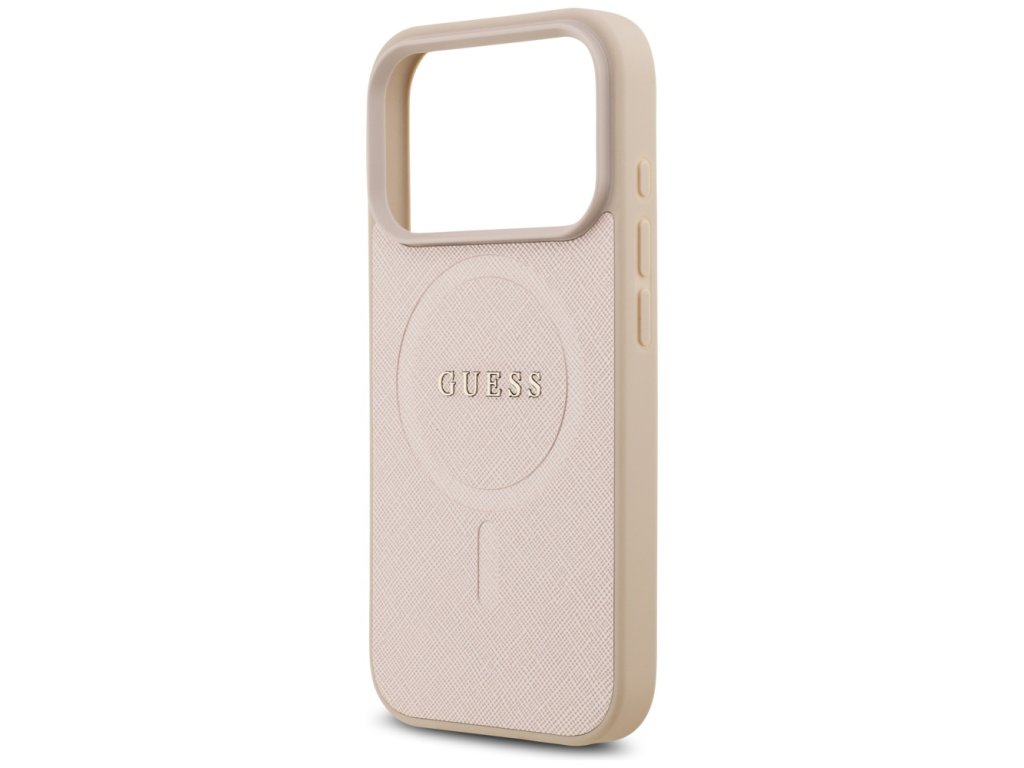 Guess – Saffiano Classic Logo MagSafe obal na iPhone 17 Pro Max – růžový