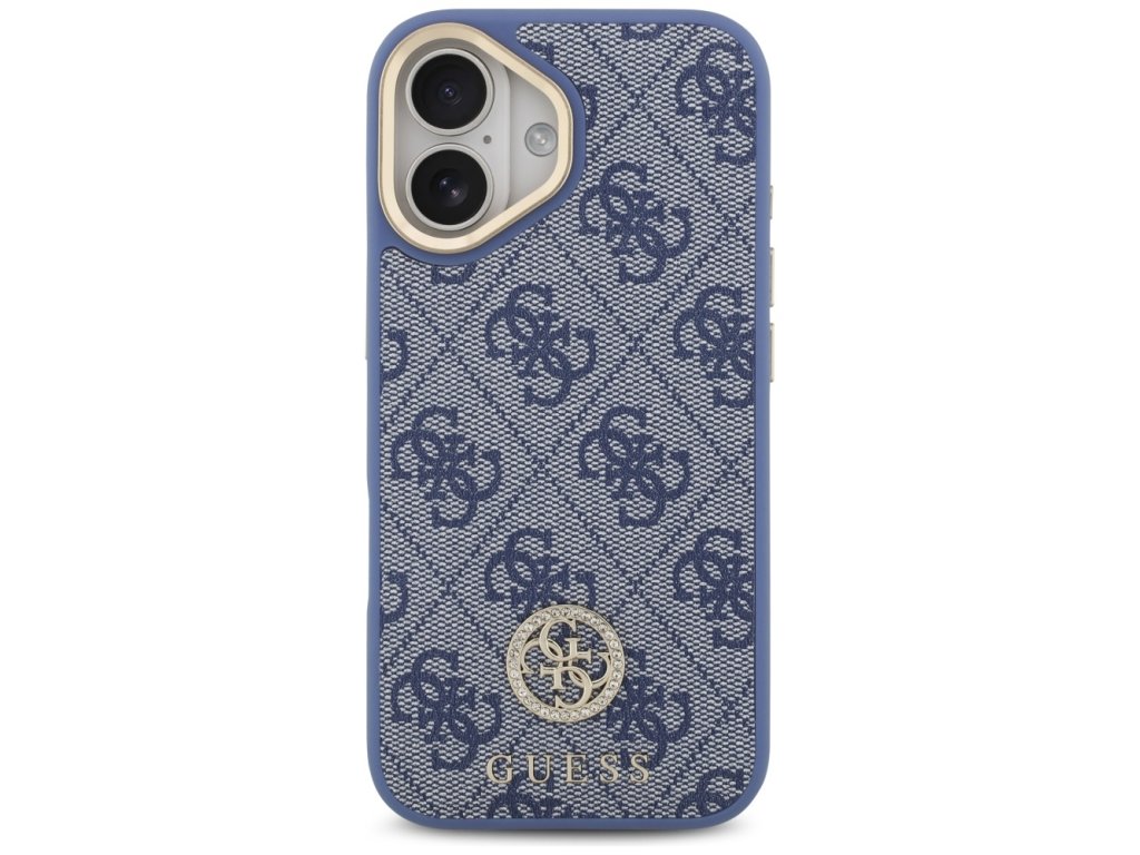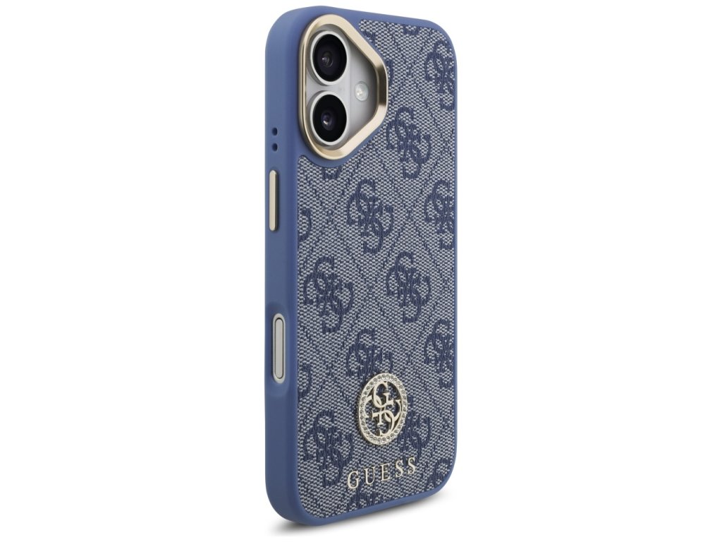Guess - 4G Strass Logo s Big Strap Metal Button MagSafe pouzdro pro iPhone 17 - modré