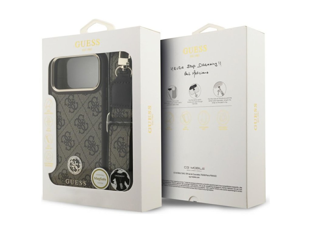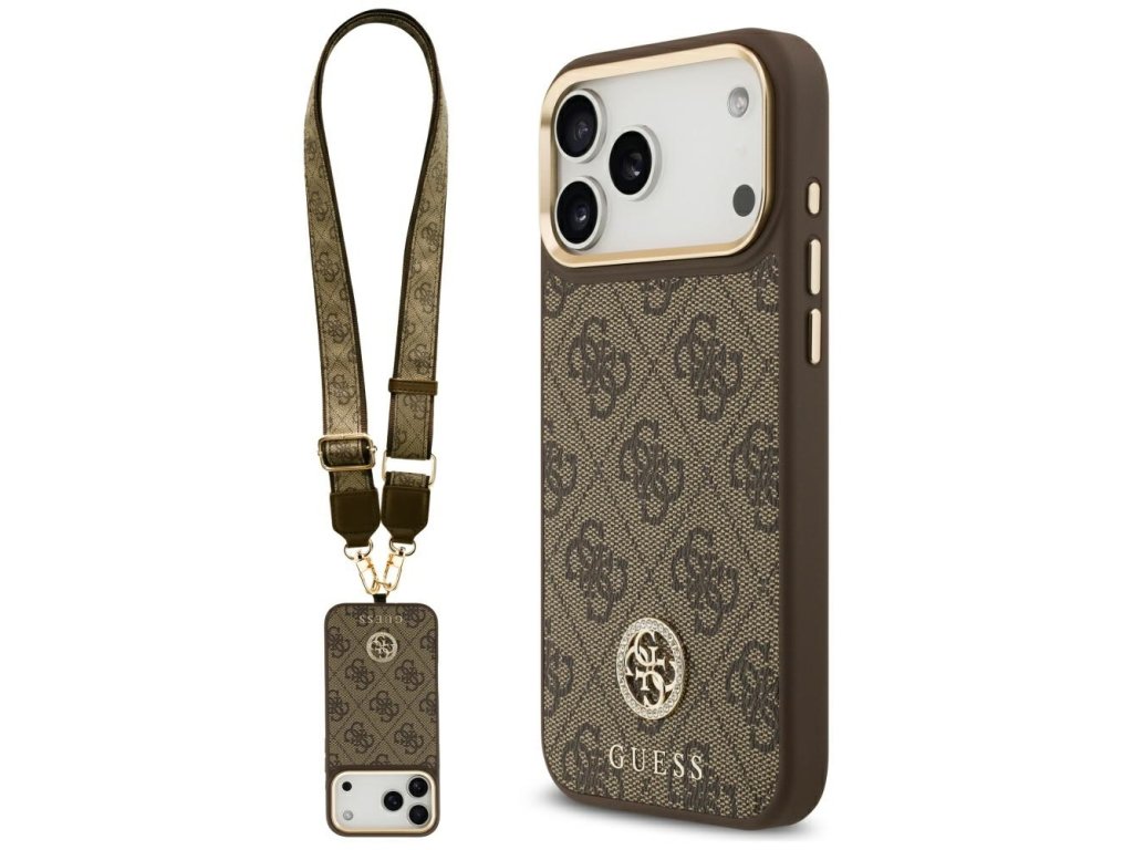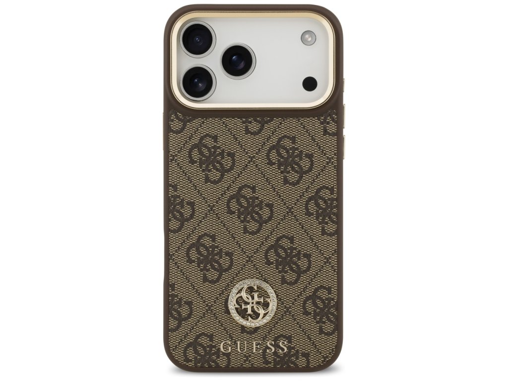 Guess - 4G Strass Logo s Big Strap Metal Button MagSafe pouzdro pro iPhone 17 Pro Max - hnědé