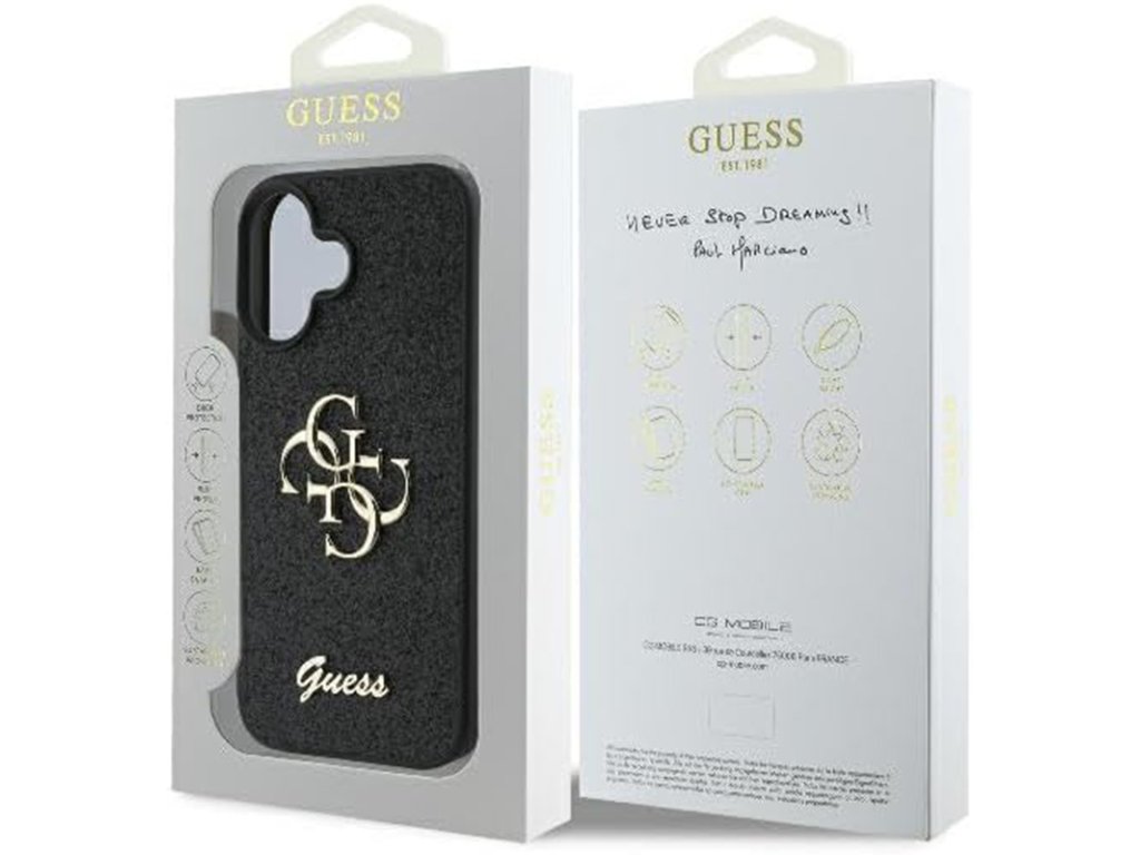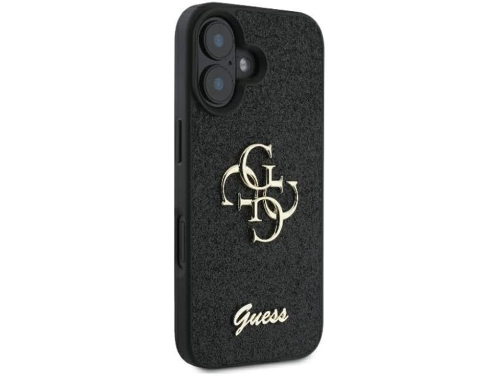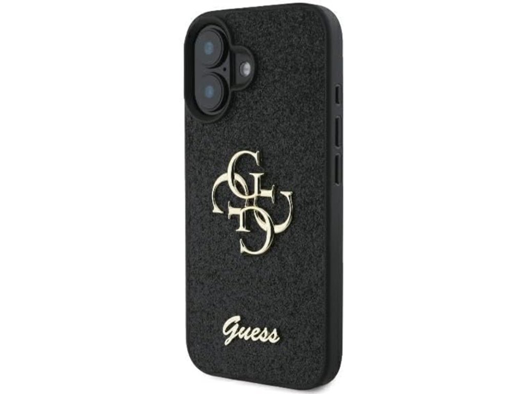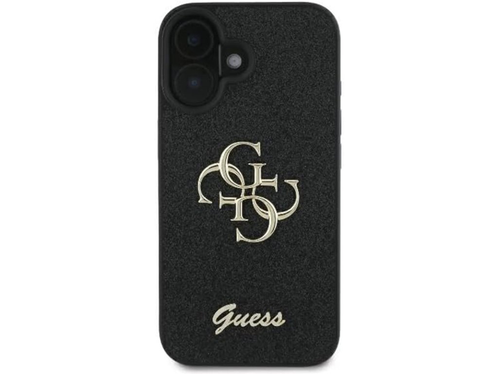 Guess Glitter Fixed Big 4G kryt na iPhone 16 (GUHCP16SHG4SGK) - černý