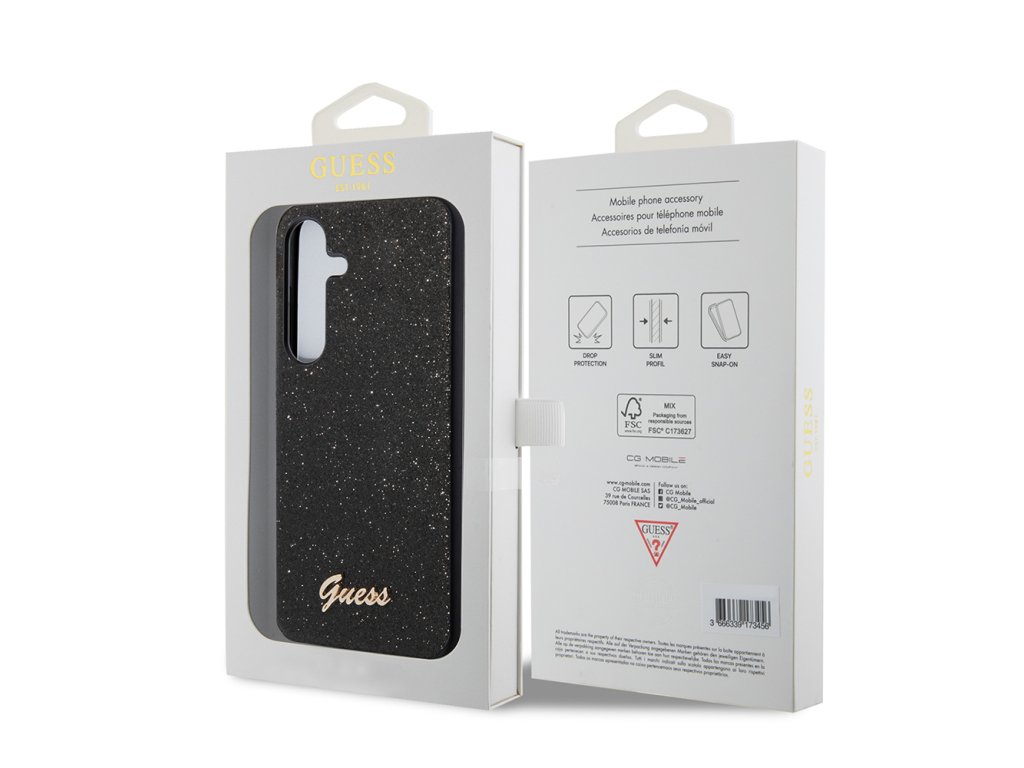 Guess Glitter Script (GUHCS24MHGGSHK) kryt pro Samsung Galaxy S24 Plus – Černý