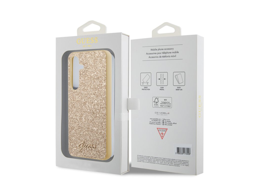 Guess Glitter Script (GUHCS24SHGGSHD) kryt pro Samsung Galaxy S24 – Zlatý