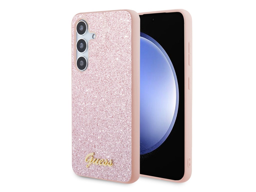 Guess Glitter Script (GUHCS24SHGGSHP) kryt pro Samsung Galaxy S24 – Růžový