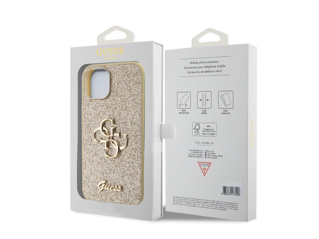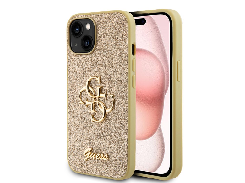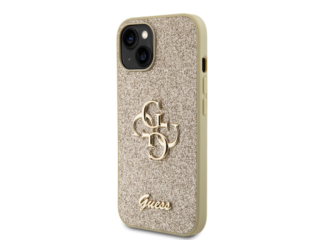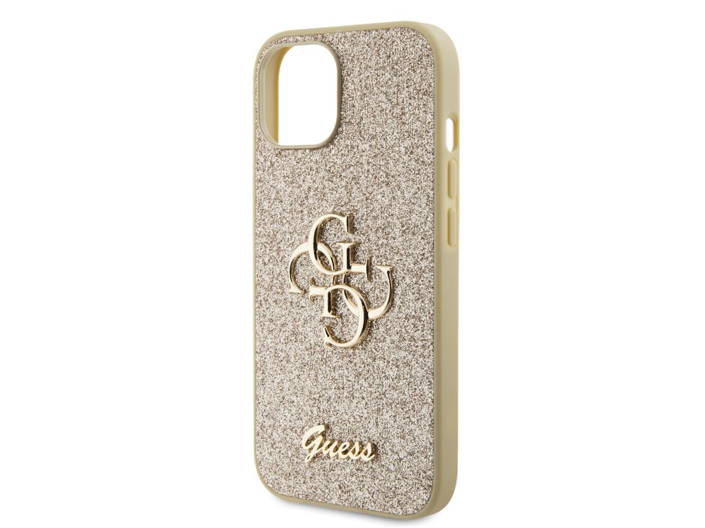 Guess Glitter Script Big 4G kryt na iPhone 15 (GUHCP15SHG4SGD) - zlatý