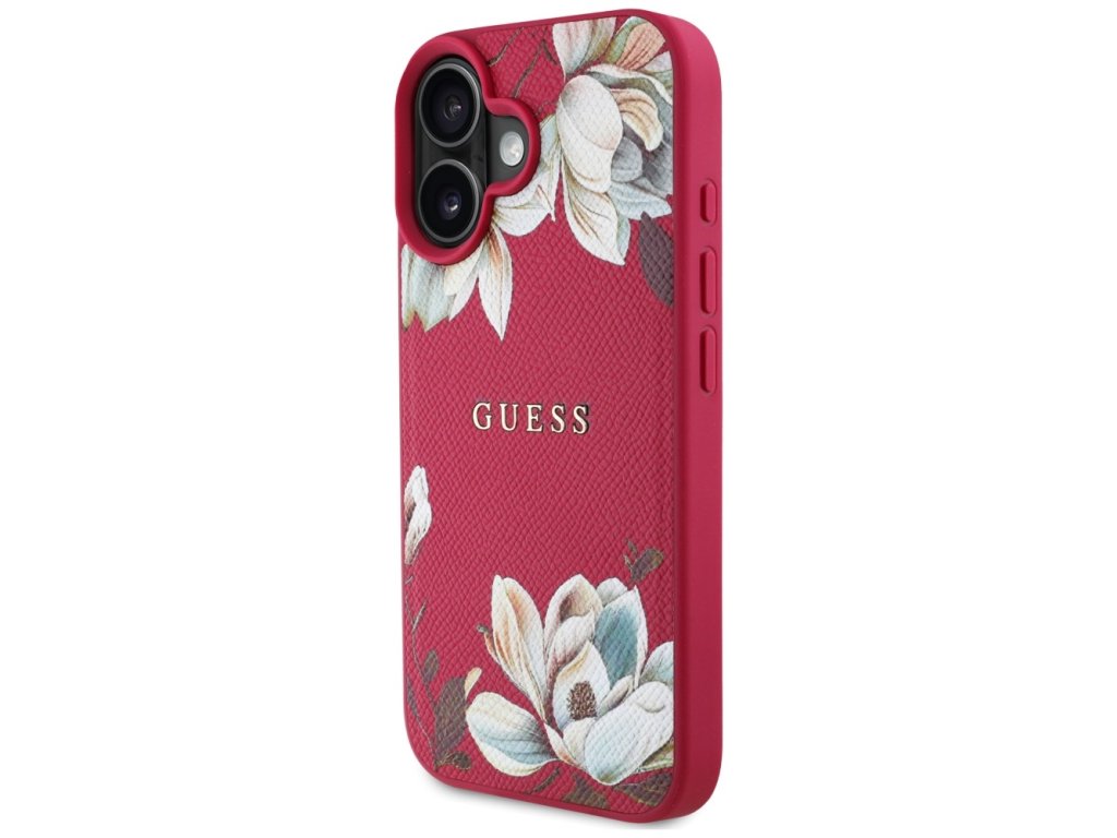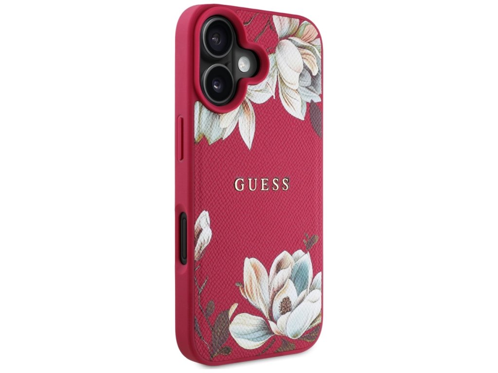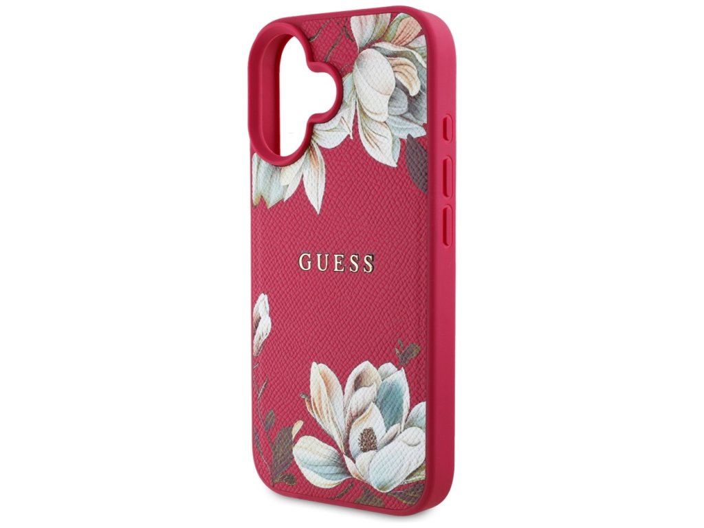 Guess Grained Flowers MagSafe Kryt pro iPhone 16 – fuchsiový