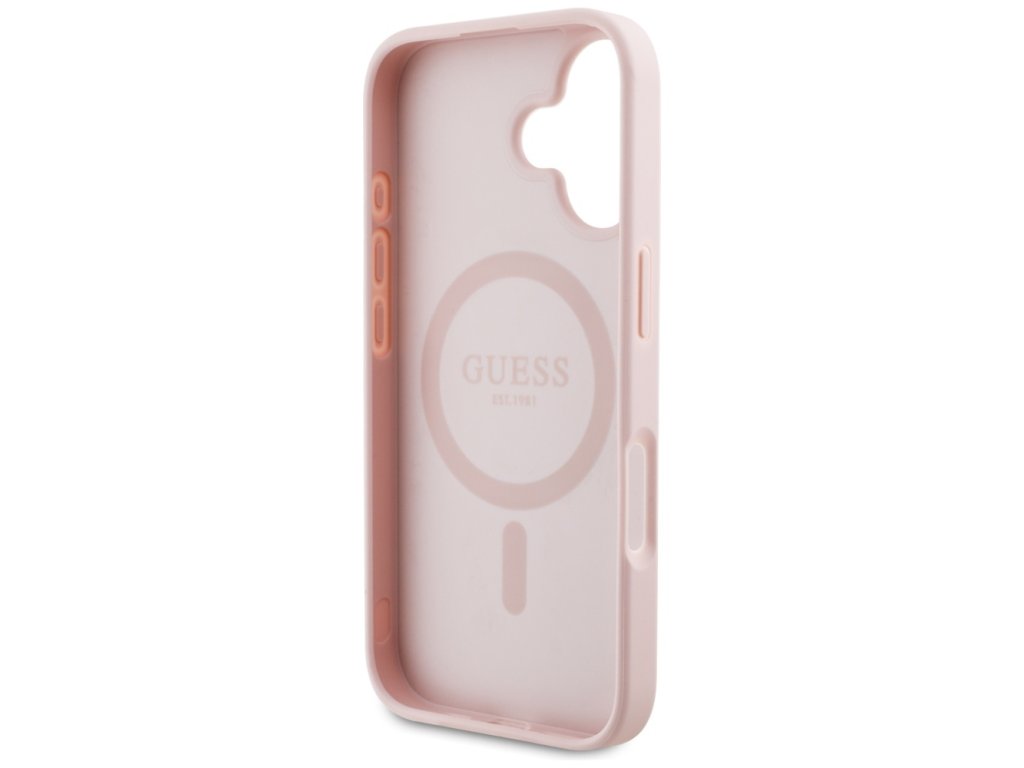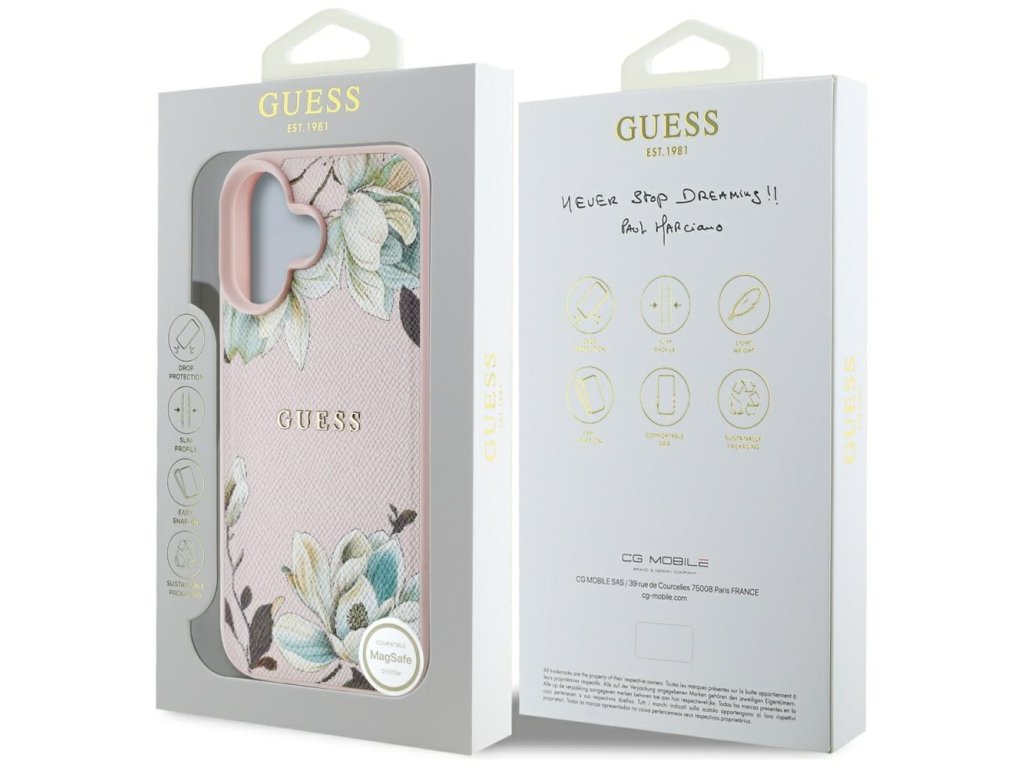 Guess Grained Flowers MagSafe Kryt pro iPhone 16 – růžový