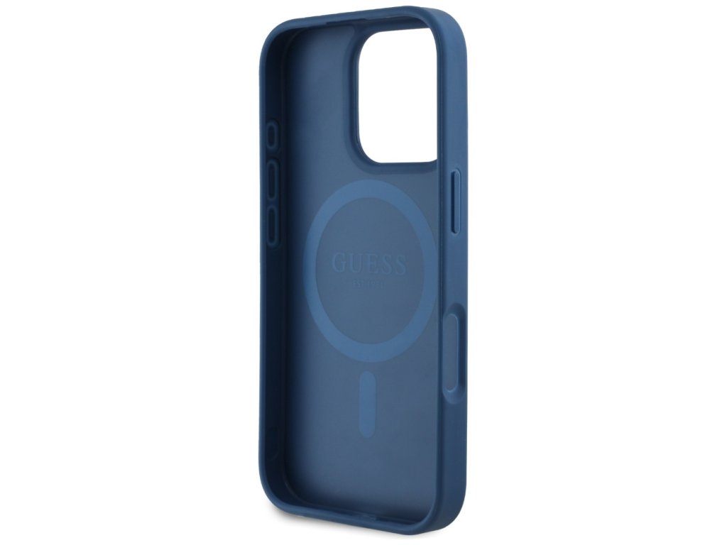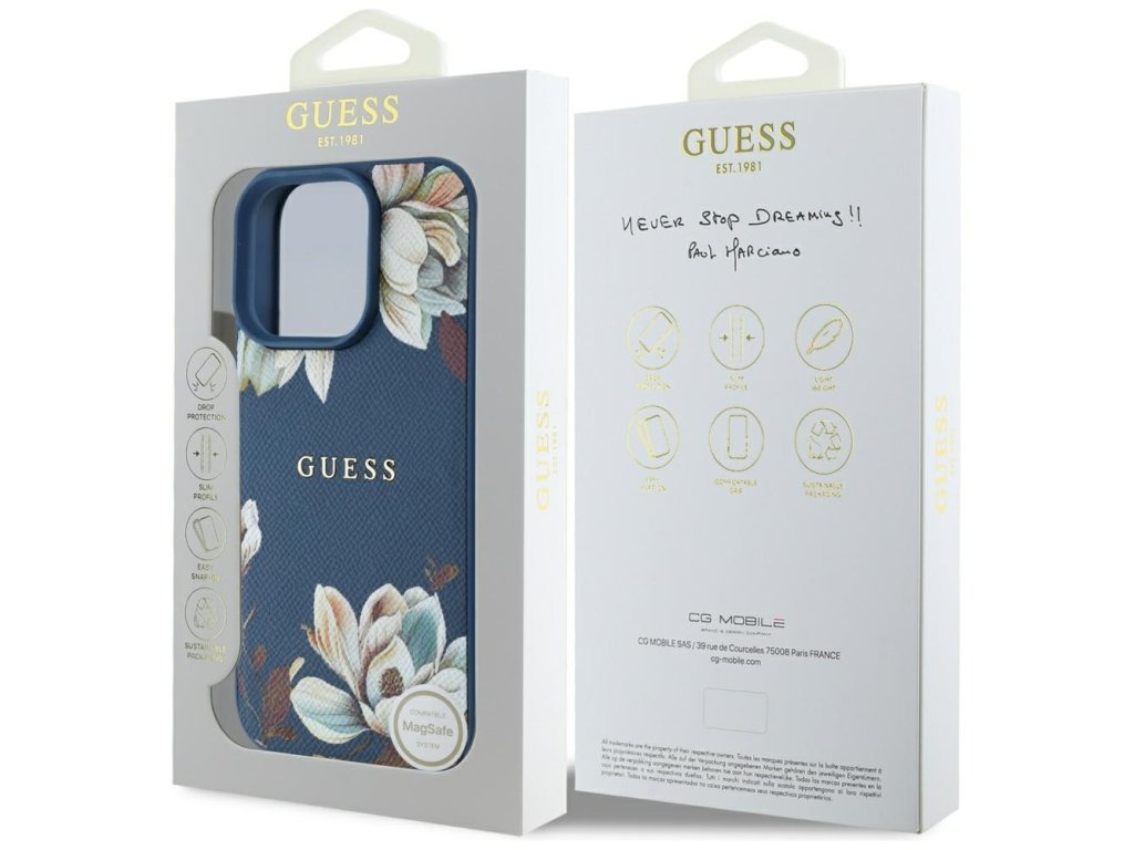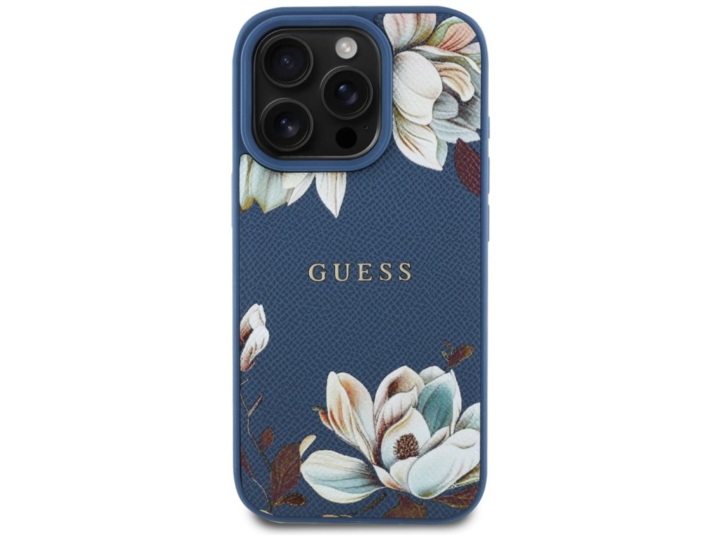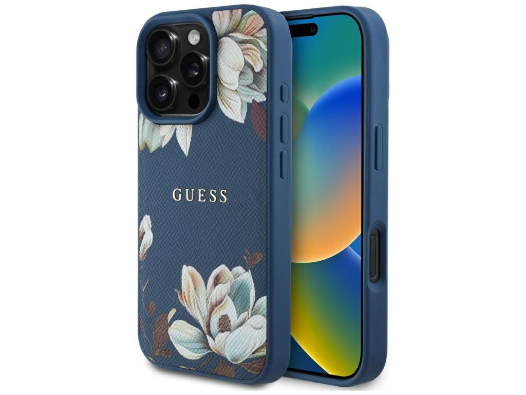 Guess Grained Flowers MagSafe Kryt pro iPhone 16 Pro Max – modrý
