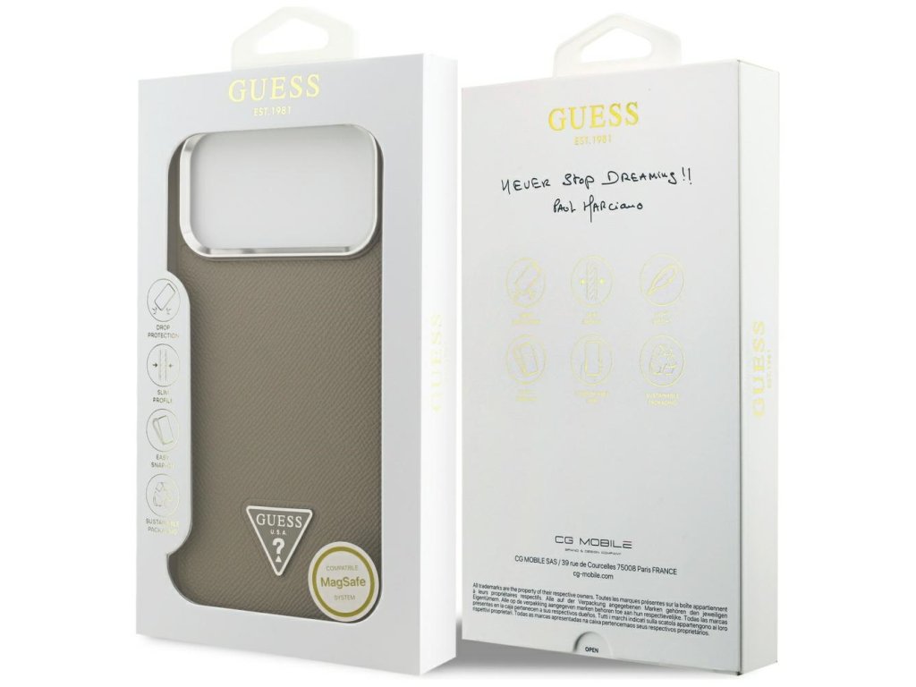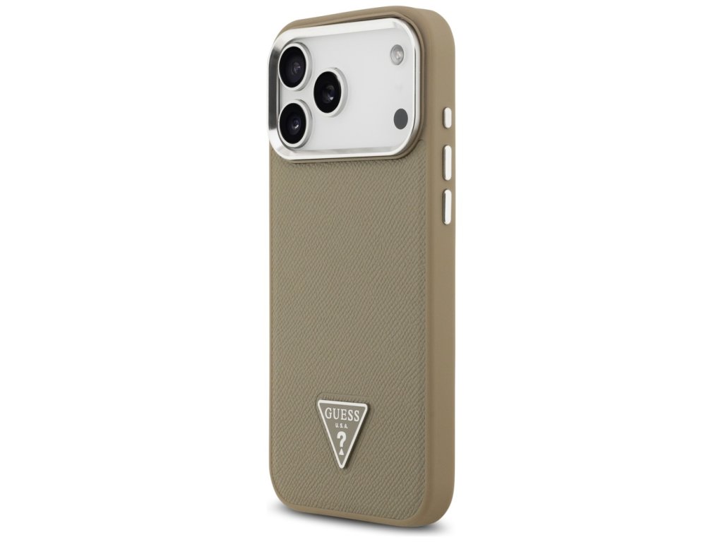 Guess - Grained Triangle Logo MagSafe pouzdro pro iPhone 17 Pro - hnědé
