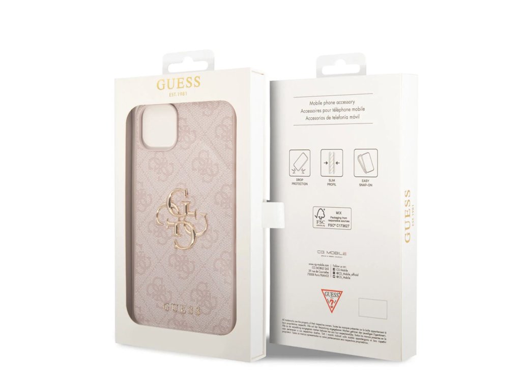 Guess - Hardcase 4G Big Metal Logo kryt na iPhone 15 Plus - Růžová