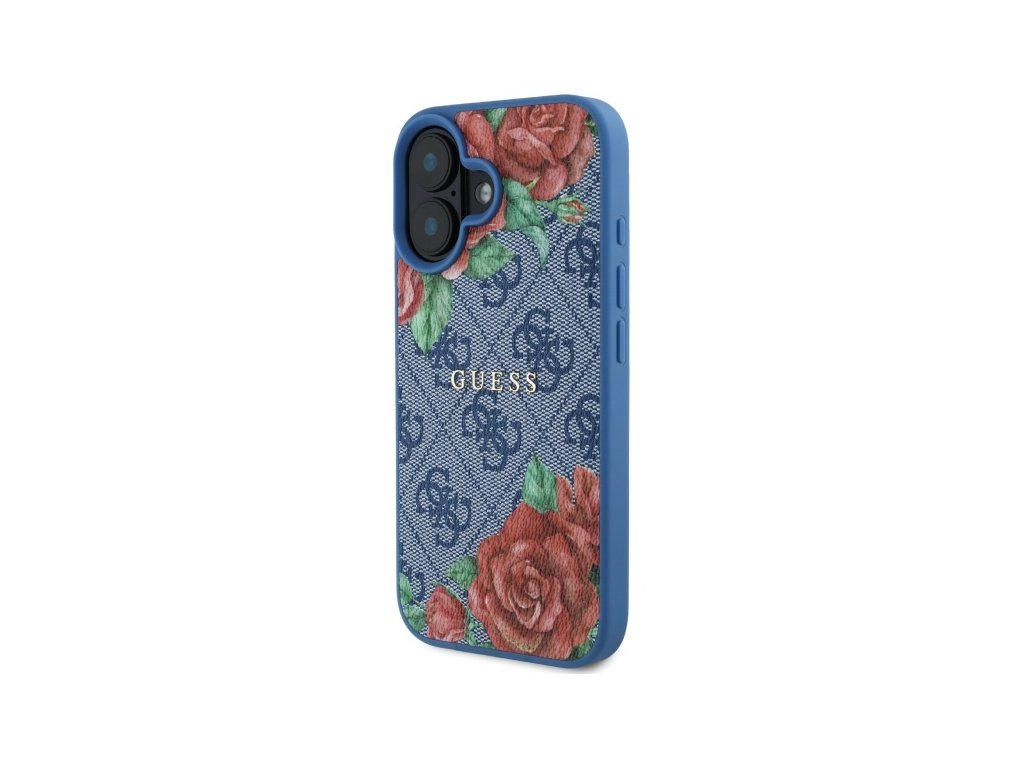 Guess Hardcase 4G Flower Print MagSafe pouzdro (GUHMP16SP4ROPEMCB) pro iPhone 16 – modré