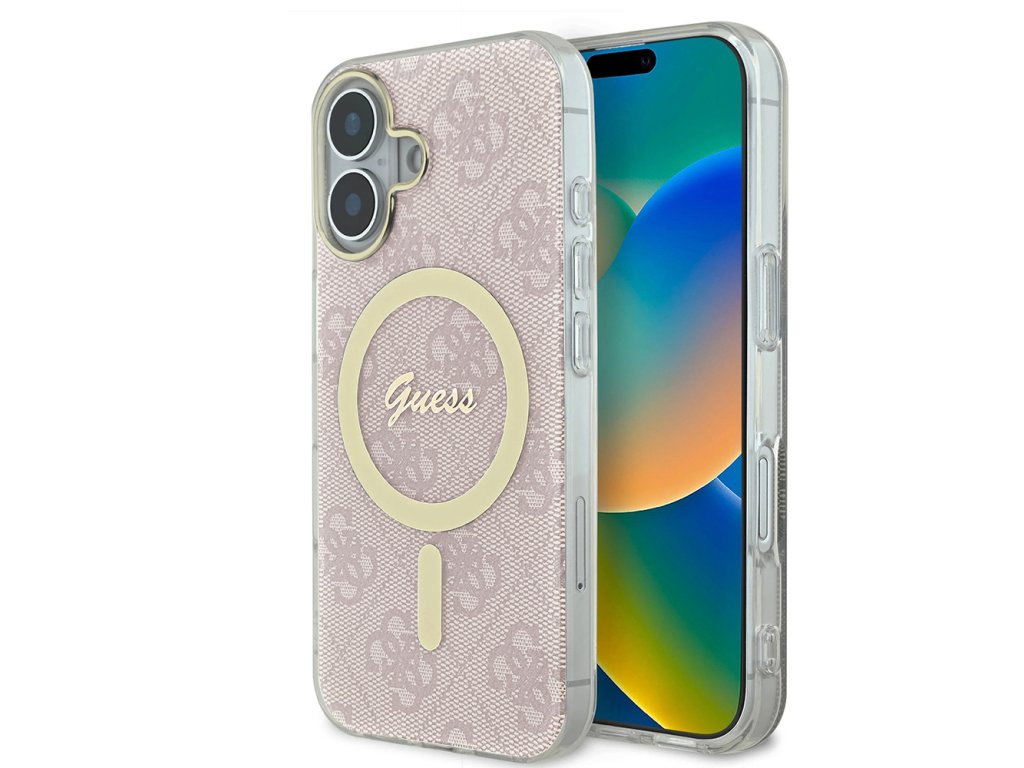 Guess IML 4G MagSafe kryt na iPhone 16 (GUHMP16SH4STP) - růžový