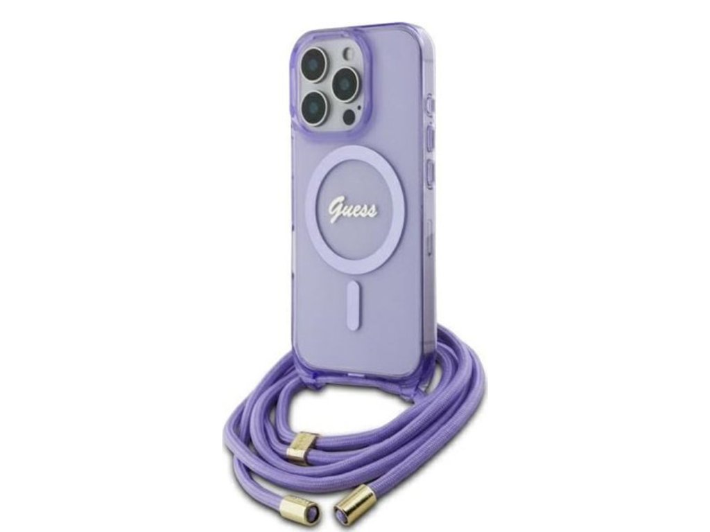 Guess IML Crossbody Cord Script MagSafe (GUHMP16LHCTSGNSU) pouzdro pro - iPhone 16 Pro Max - Fialová