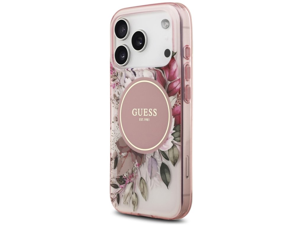 Guess - IML Flower & Tonal Circle MagSafe pouzdro pro iPhone 17 Pro Max - růžové