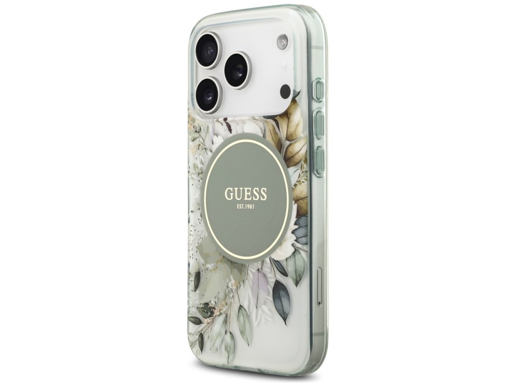Guess - IML Flower & Tonal Circle MagSafe pouzdro pro iPhone 17 Pro Max - zelené