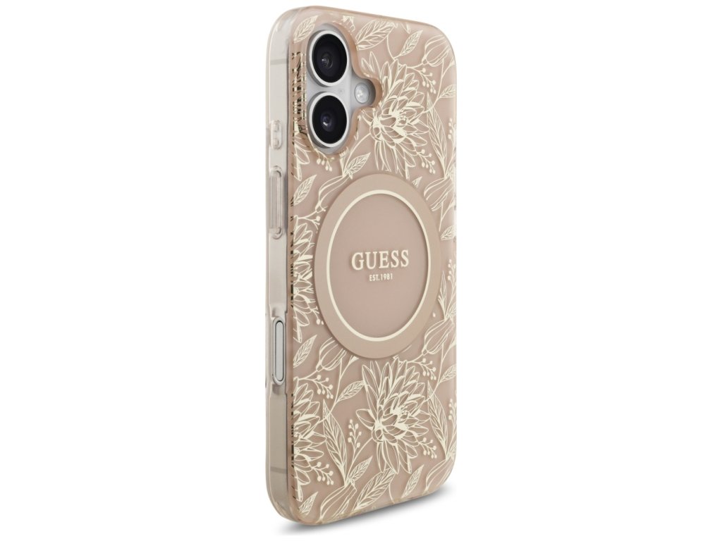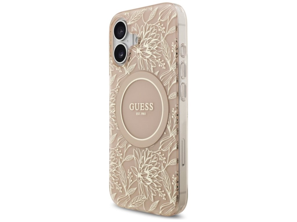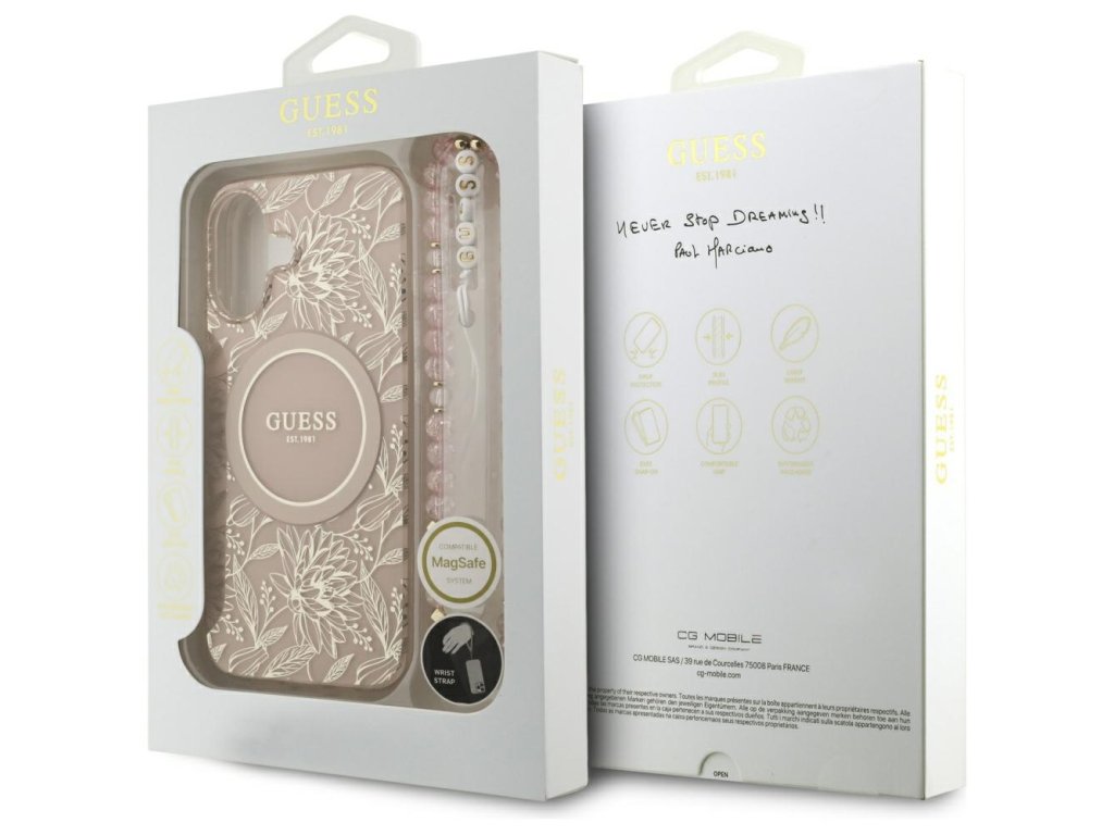 Guess - IML Flowers Allover Electroplated with Pearl Strap MagSafe pouzdro pro iPhone 17 - černé