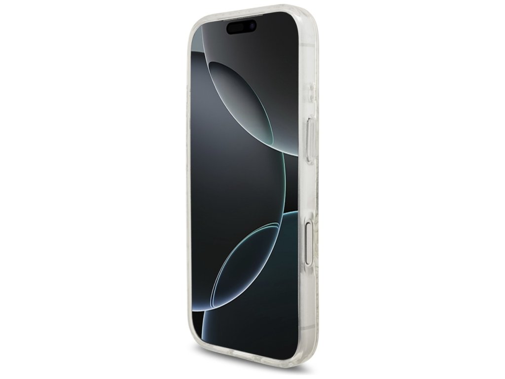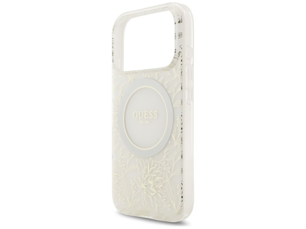 Guess - IML Flowers Allover Electroplated with Pearl Strap MagSafe pouzdro pro iPhone 17 Pro - bílé