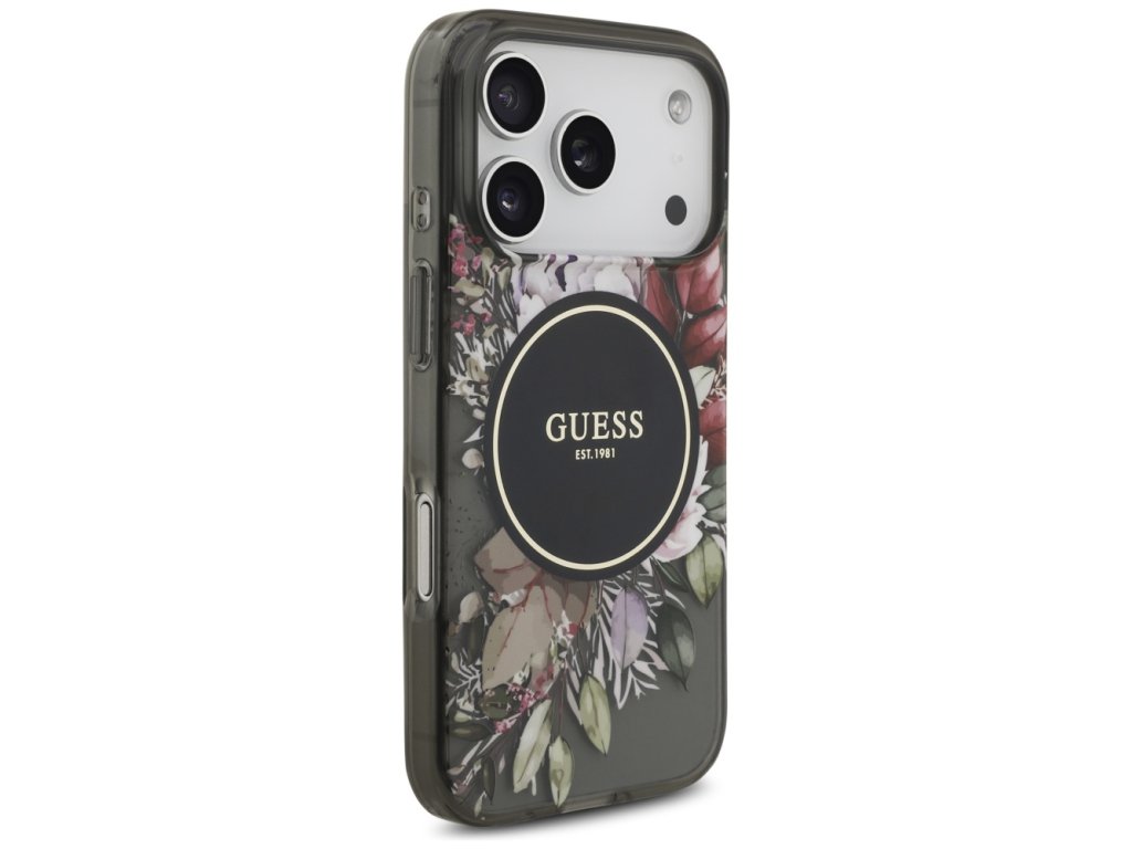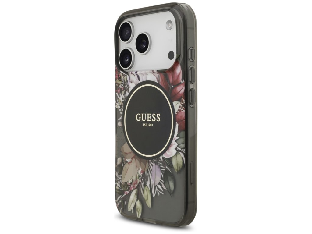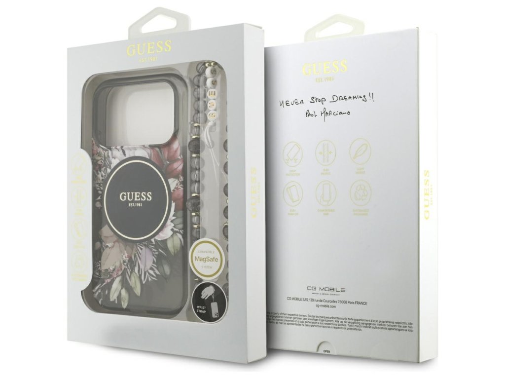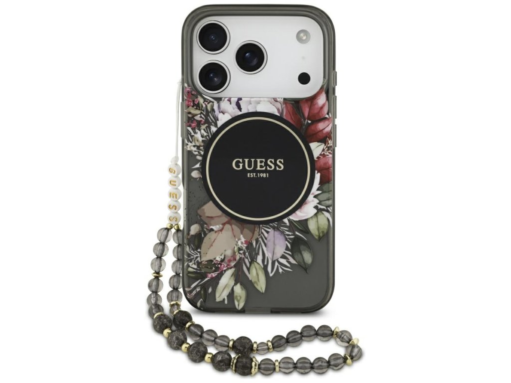 Guess - IML Flowers with Pearl Strap MagSafe pouzdro pro iPhone 17 Pro - černé