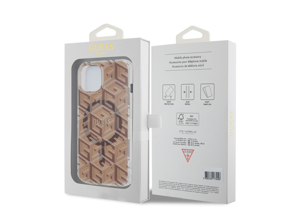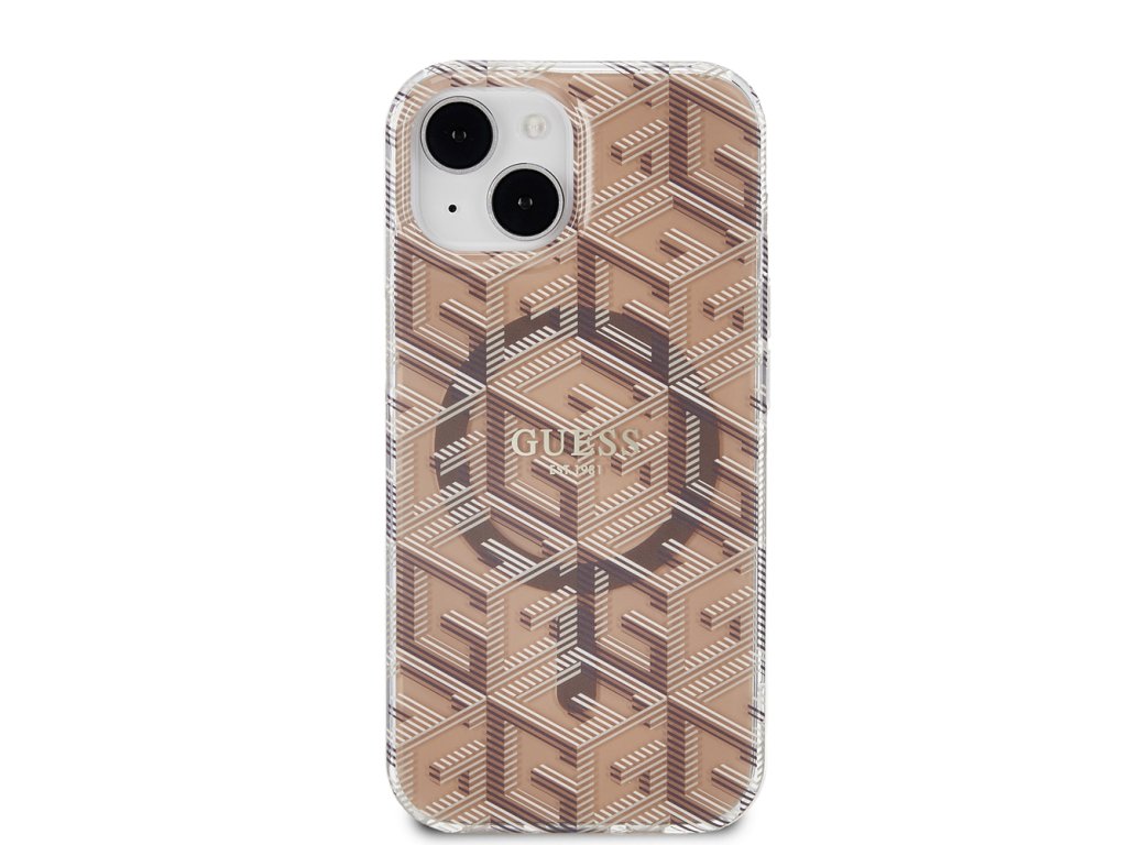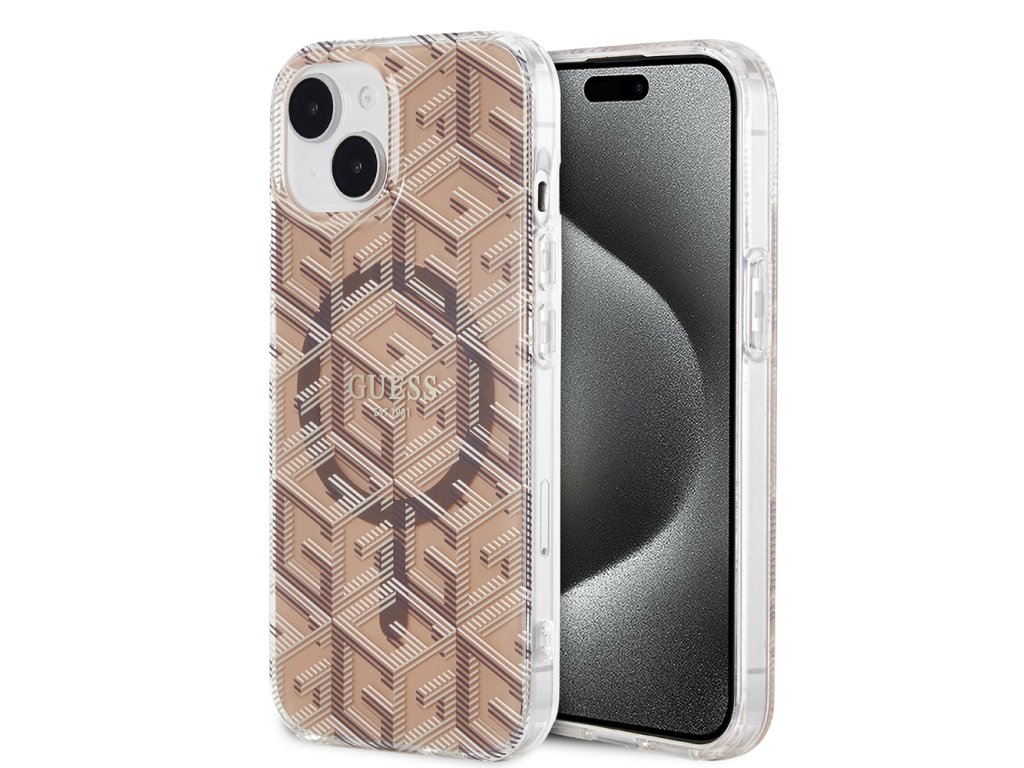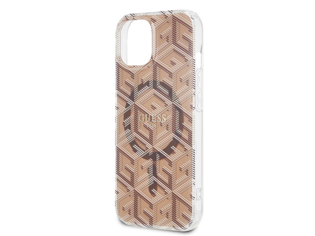 Guess IML GCube kryt s MagSafe na iPhone 15 (GUHMP15SHGCUSTGW) - hnědý
