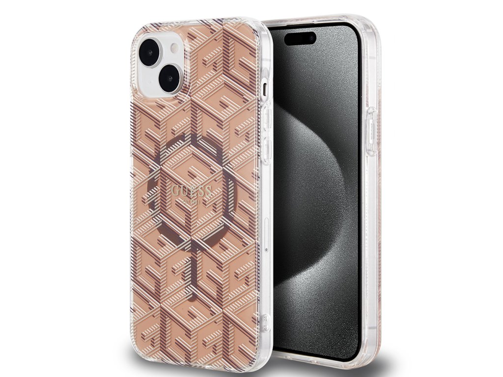 Guess IML GCube kryt s MagSafe na iPhone 15 Plus (GUHMP15MHGCUSTGW) - hnědý