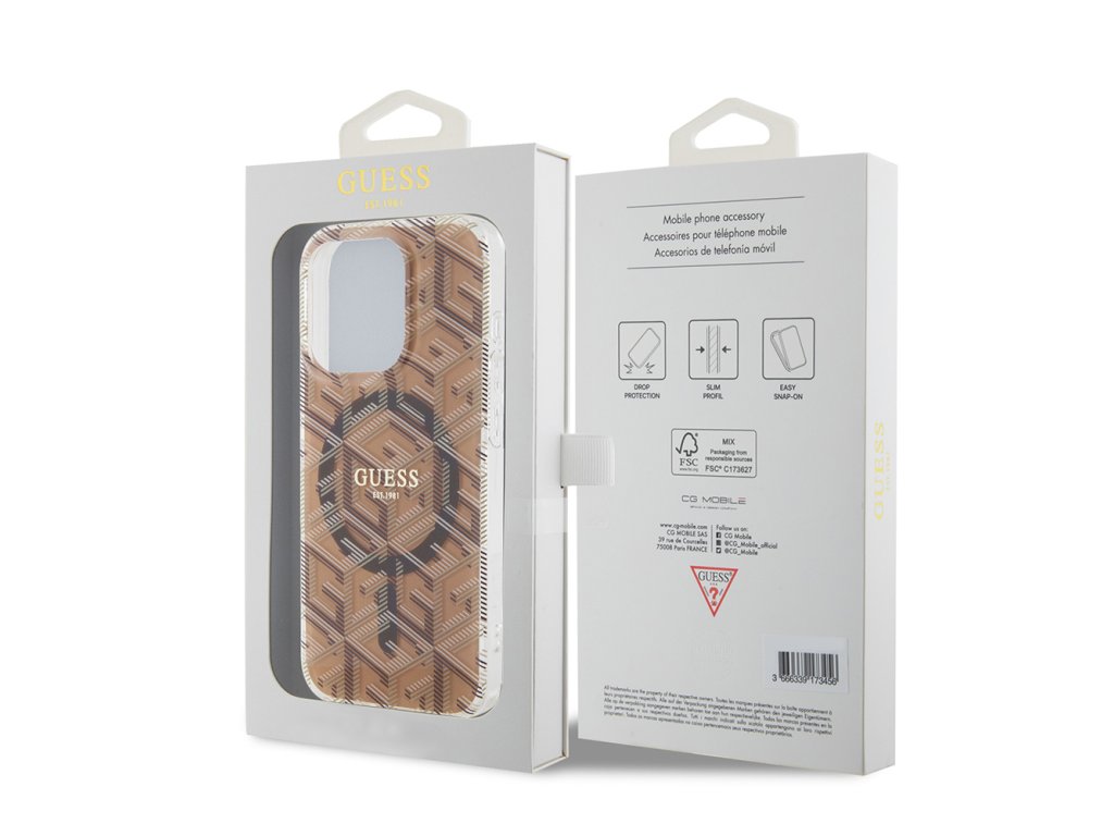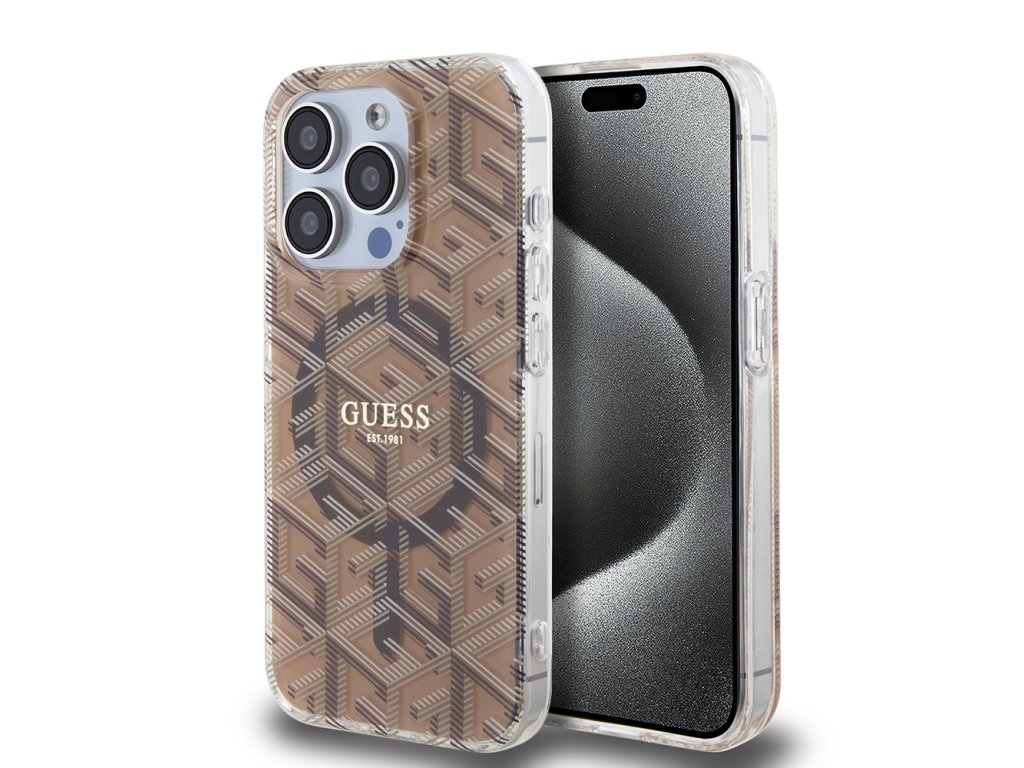 Guess IML GCube kryt s MagSafe na iPhone 15 Pro Max (GUHMP15XHGCUSTGW) - hnědý