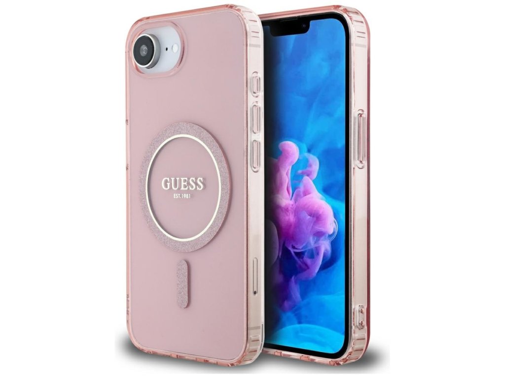 Guess - IML Glitter Circle MagSafe obal na iPhone 16e - růžový