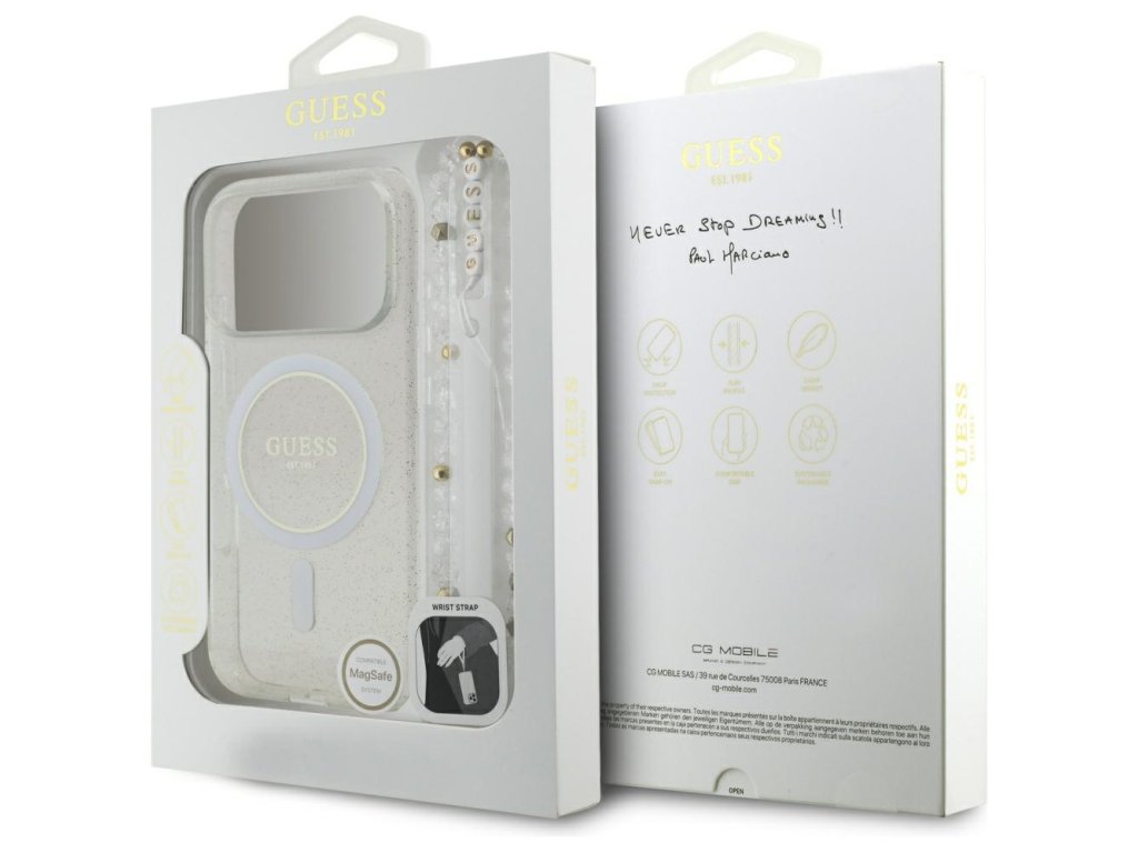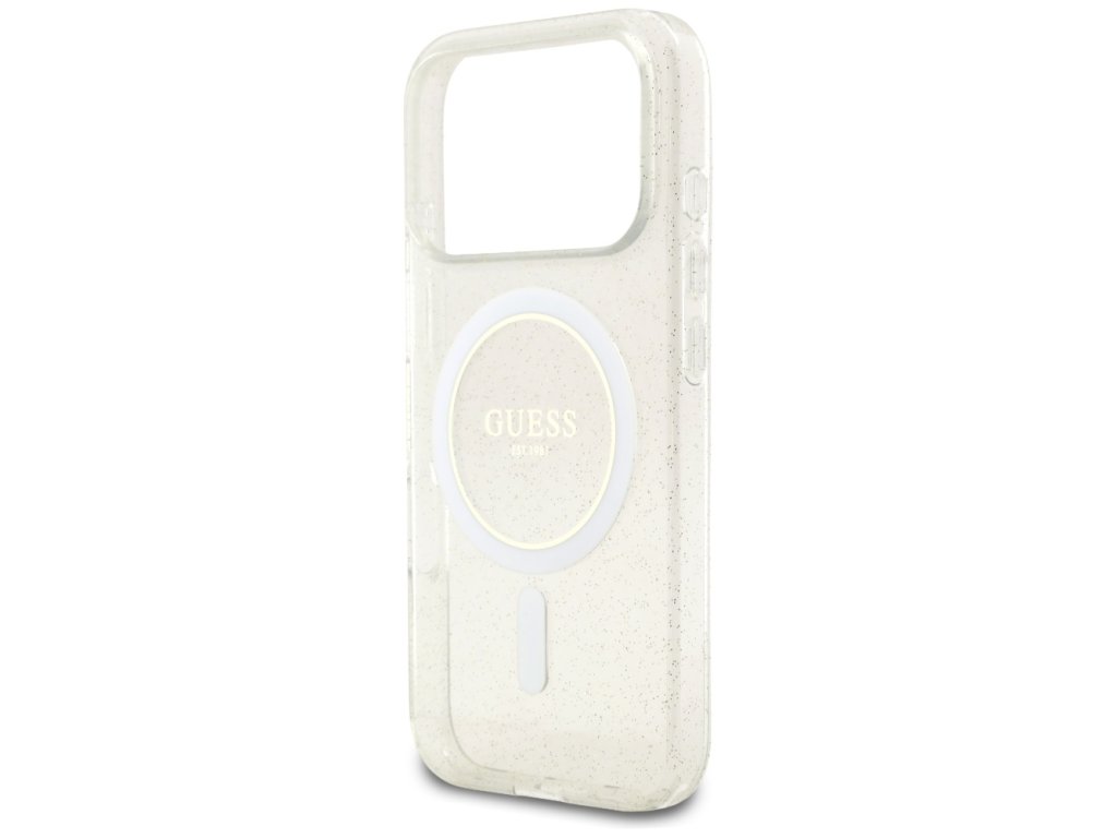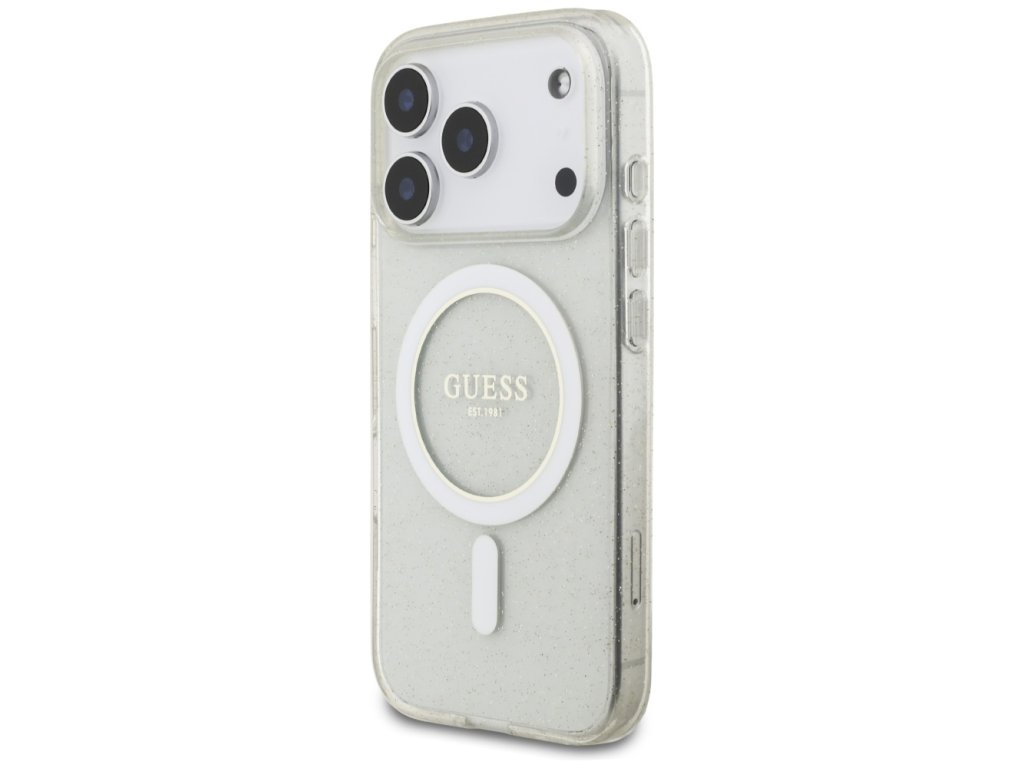 Guess - IML Glitter with Pearl Strap MagSafe pouzdro pro iPhone 17 Pro Max - průhledné