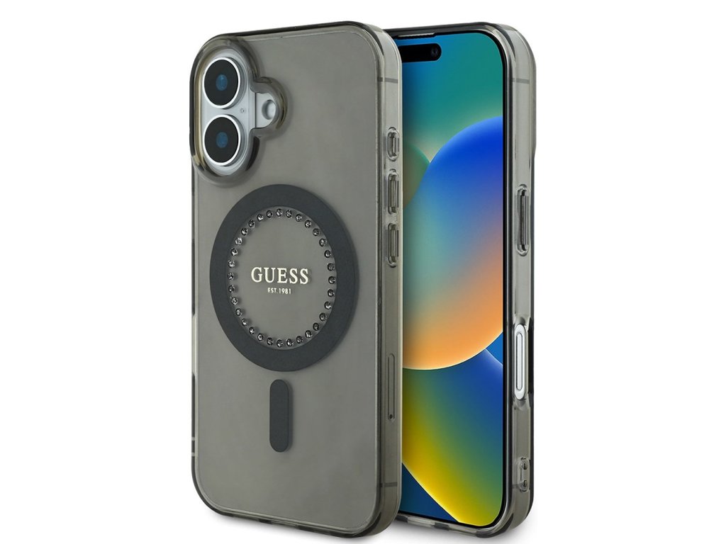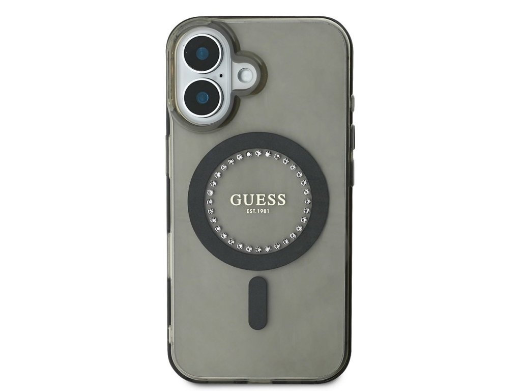 Guess IML kryt s kamínky a MagSafe na iPhone 16 (GUHMP16SPFTDTEK) - černý